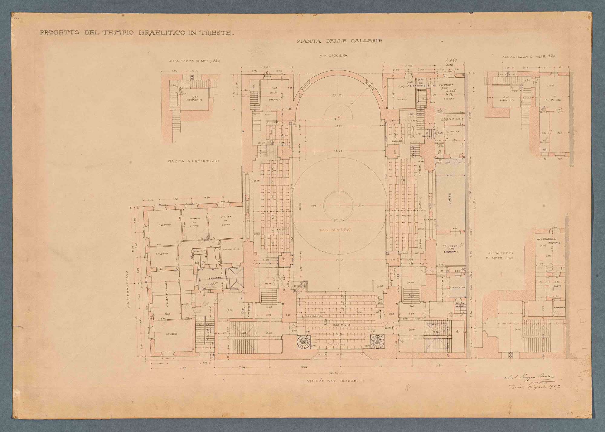 Tavola progettuale per la Sinagoga di Trieste.