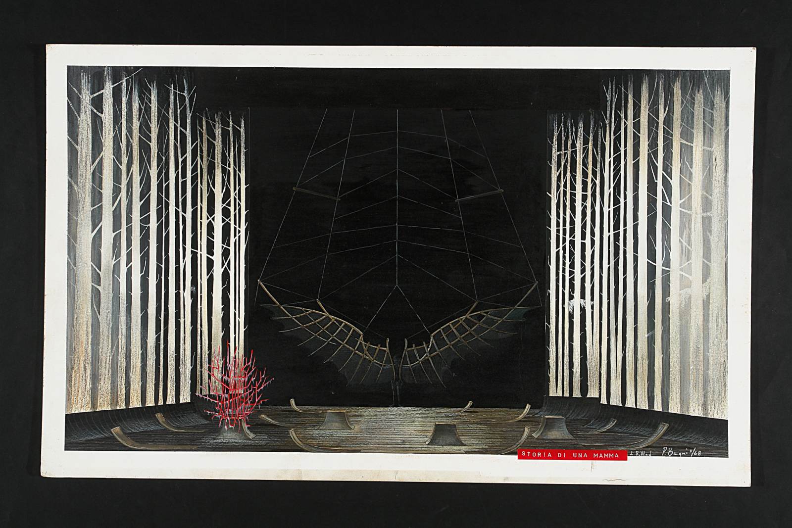 Scenografia per Storia di una mamma, opera di Roman Vlad, Trieste, Teatro Verdi, stagione lirica 1968/1969, novità assoluta.