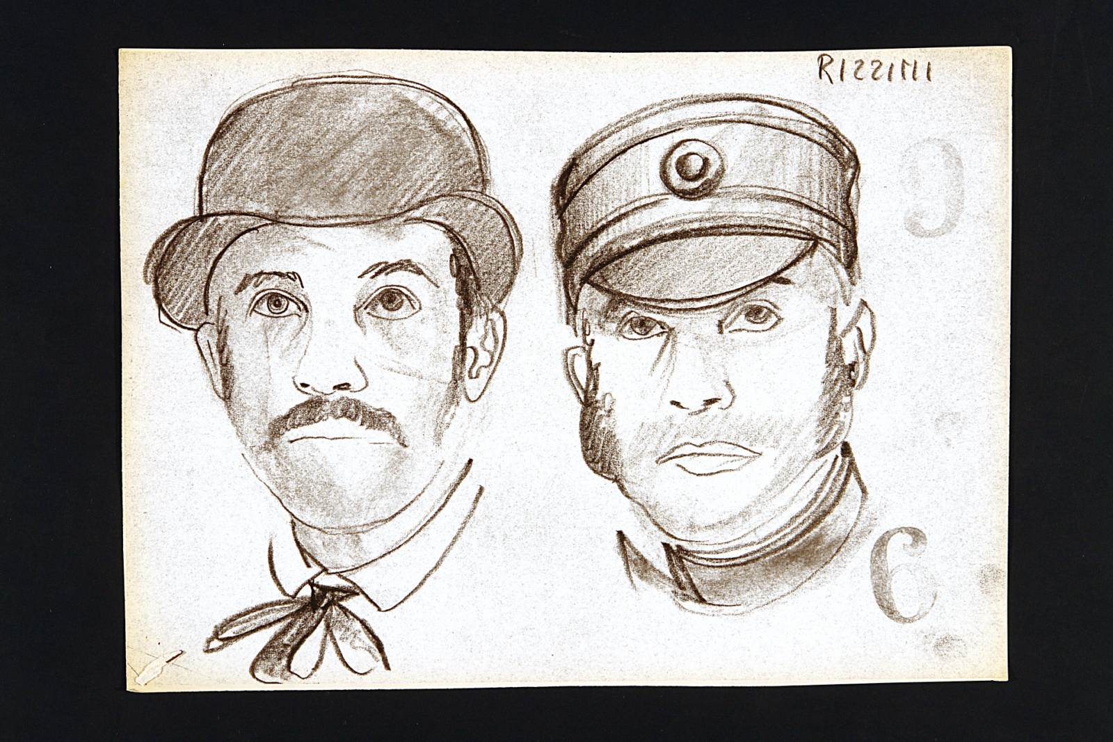 Motivo di scandalo e di riflessione, due tempi di John Osborne. Due volti maschili, a sinistra con bombertta, baffi e fiocco al collo, a destra con cappello e colletto da divisa