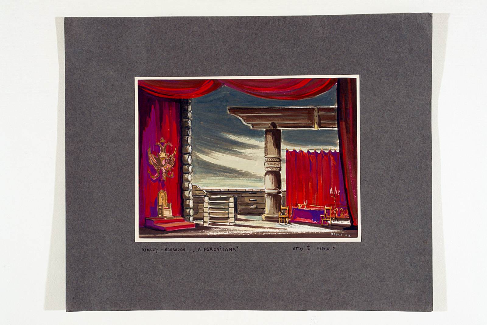 Bozzetto scenografico per Pskovitianka (Ivan il terribile), opera di Nikolaj Andreevič Rimskij-Korsakov, prima rappresentazione 13 gennaio 1968, Teatro Comunale Giuseppe Verdi Trieste, regia di Mladen Sablic