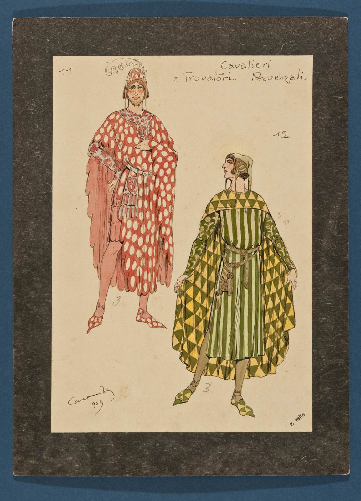 Melisenda, azione lirica di Carlo Merli, figurino per Cavalieri e trovatori provenzali