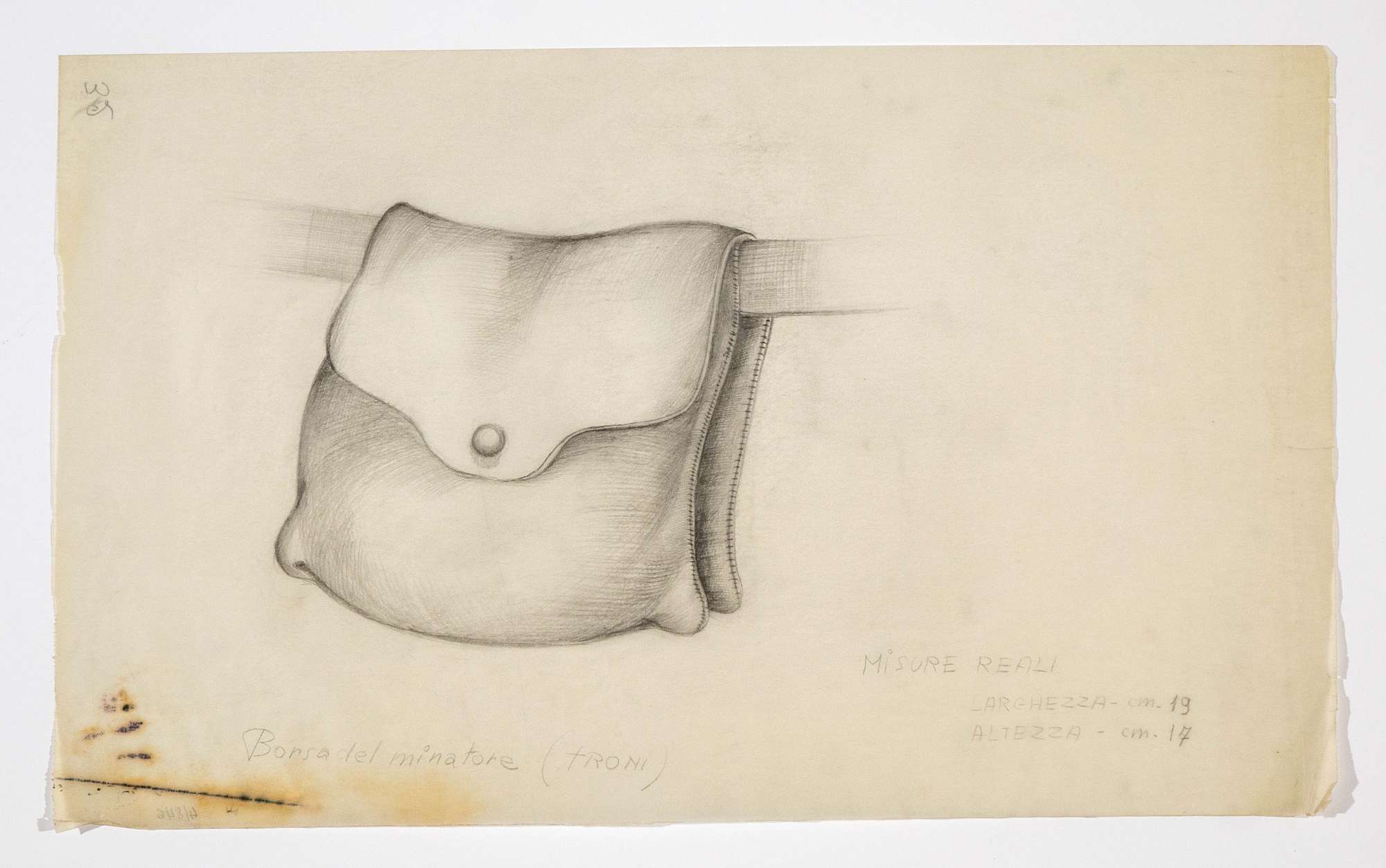 Il gioco dei potenti, libero adattamento di Giorgio Strehler da Enrico VI, dramma storico di William Shakespeare, in 15 atti e 2 giornate. Borsa con patella chiusa a bottone, appesa a cavallo di una cintura tramite un ripiegamento di se stessa.