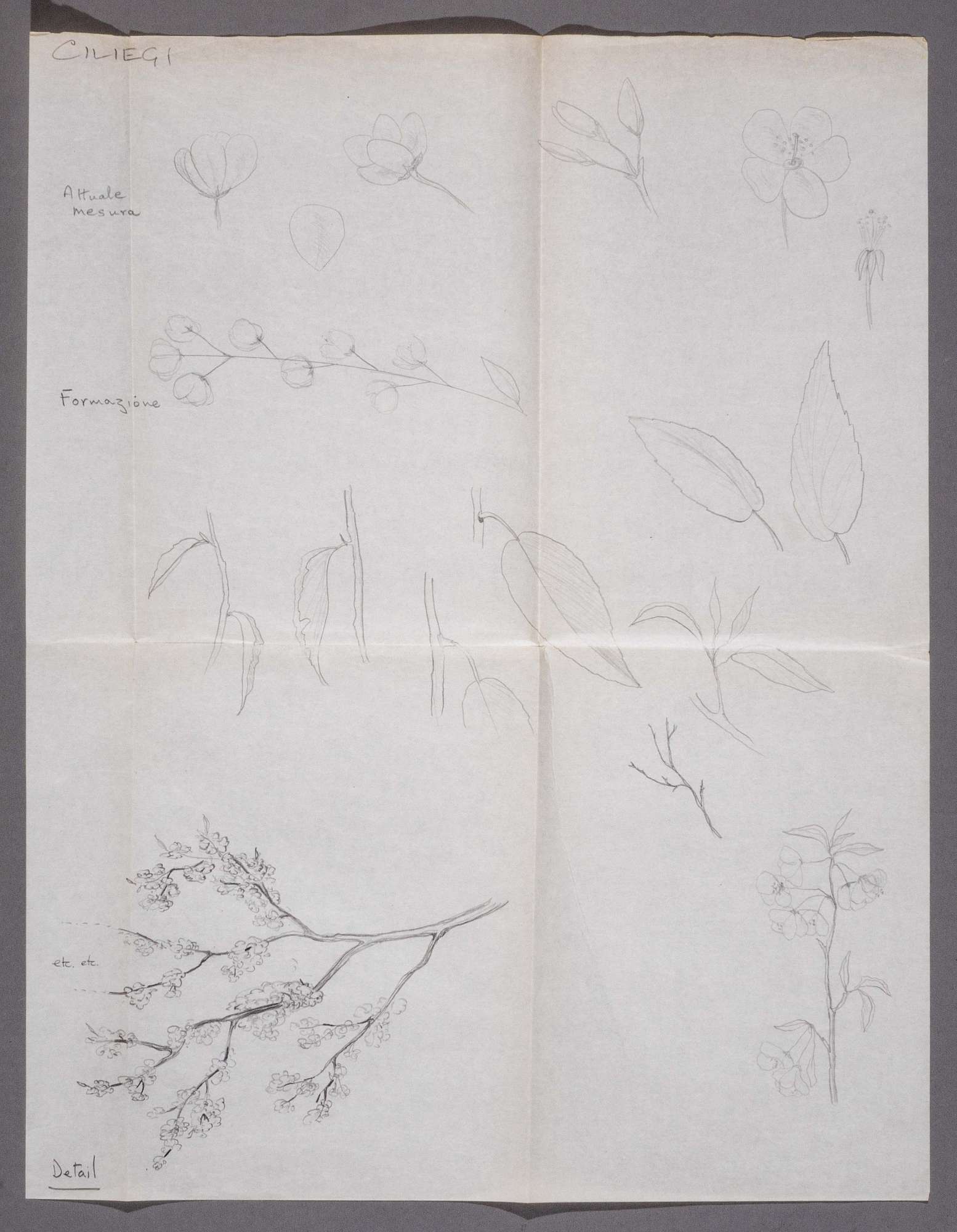 Il giardino dei ciliegi, di Anton Čechov. Studi per ciliegi: fiori, boccioli, petali, foglie, rami nudi, rami con foglie, rami con foglie e fiori.