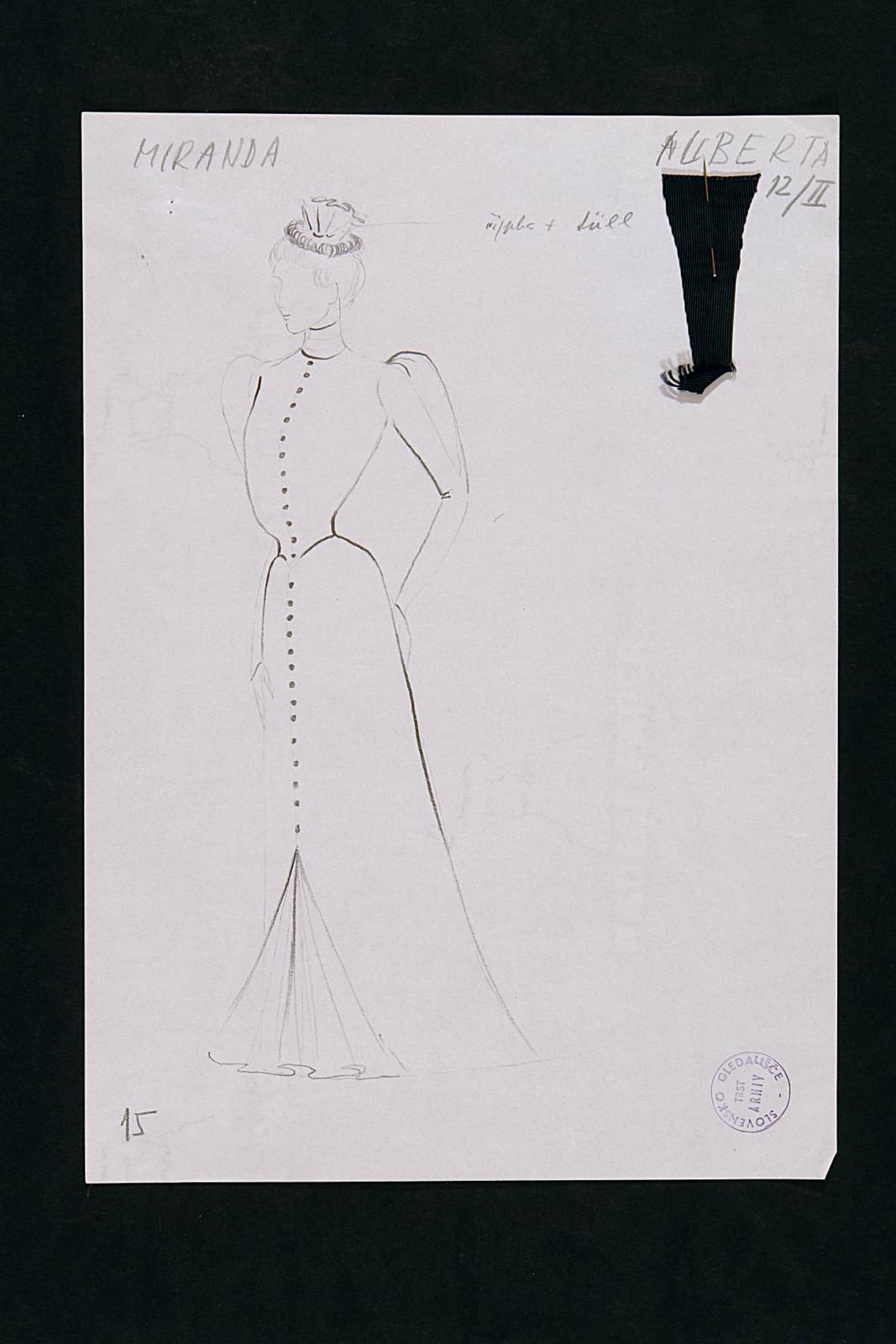 La coscienza di Zeno (Zenova Izpoved), di Italo Svevo nel rifacimento scenico di Tullio Kezich. Costume per Alberta. Figura femminile intera, lungo soprabito abbottonato sul davanti, cappellino