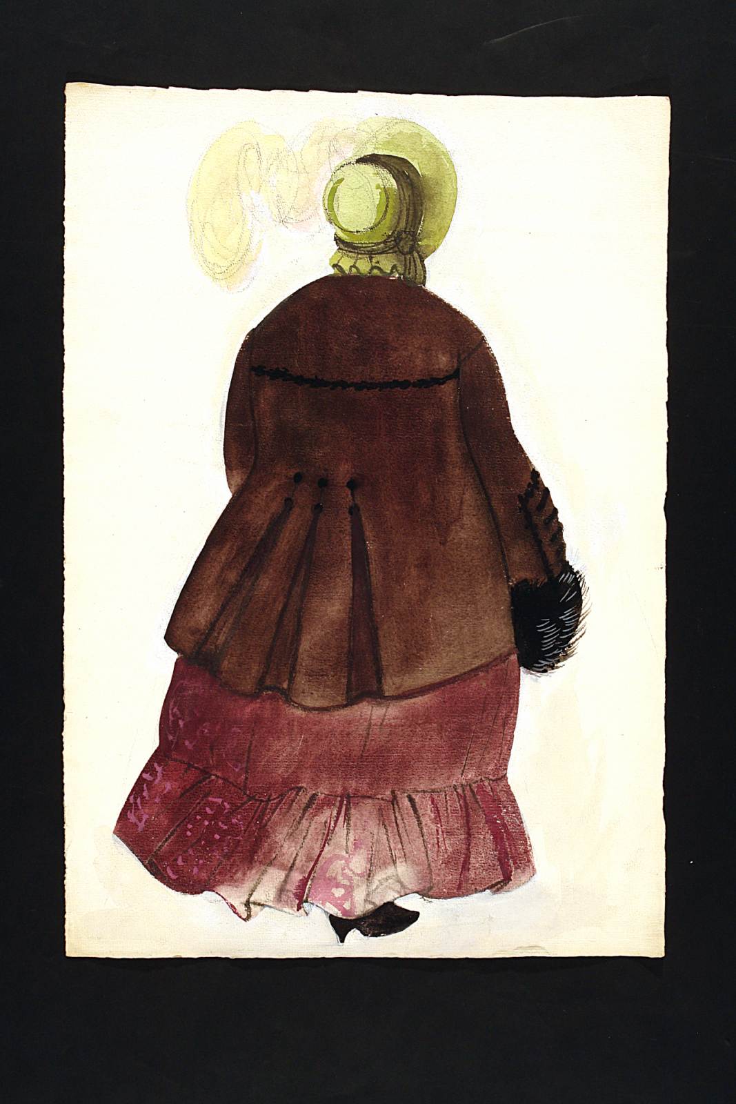La cagnotte, testo teatrale di Eugène Labiche. Figurino per Léonida, figura femminile intera di 3/4 vista da dietro (vedi CMT_OA_4_000400)