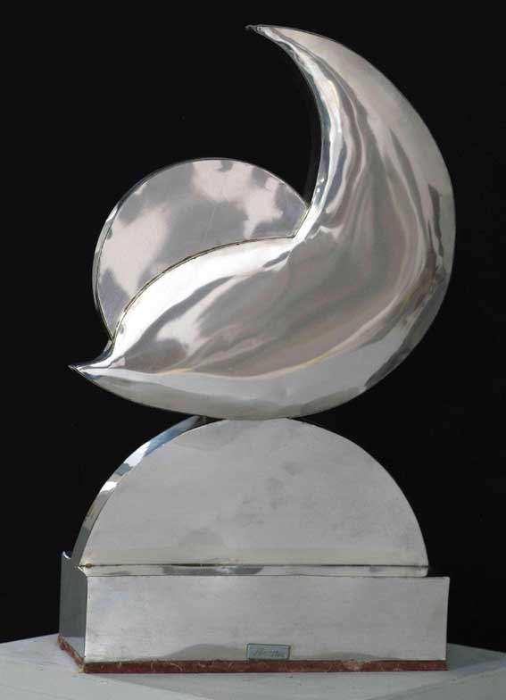 Nella seconda metà degli anni Cinquanta Romolo Bertini fu uno dei protagonisti della vita artistica triestina assieme a Titz, Coloni, e agli scultori Dequel e Cerne. Dopo essersi dedicato per alcuni decenni alla pittura e al disegno, passando dal neorealismo degli esordi all’astratto informale dei decenni successivi, a metà degli anni Sessanta si avvicinò anche ad altre forme artistiche, quali la produzione orafa e la scultura. In un arco di tempo breve di circa un paio di anni realizzò una dozzina di opere, trasportando in ciascuna di queste le stesse indagini affrontate in pittura. Per le loro caratteristiche forme tondeggianti, accentuate dall’effetto specchiante e lucido, oltre che per la scelta dell’acciaio come materiale, sono state associate dalla critica al paesaggio visivo quotidiano dell’artista caratterizzato dalla ferriera situata vicina all’abitazione di Servola; tuttavia forse per capire appieno il significato di queste opere non sono da sottovalutare le riflessioni dello stesso artista, che ha dichiarato di credere, più che nell’istinto, nel calcolo e nella ricerca di forme nuove. Nel 1993 l’opera è stata donata al Museo Revoltella dalla vedova Bertini, così come l’opera Pescatori (1956), un olio su tela entrato nelle collezioni in occasione della mostra antologica Romolo Bertini. Grafiche sculture dipinti organizzata nel 2005.