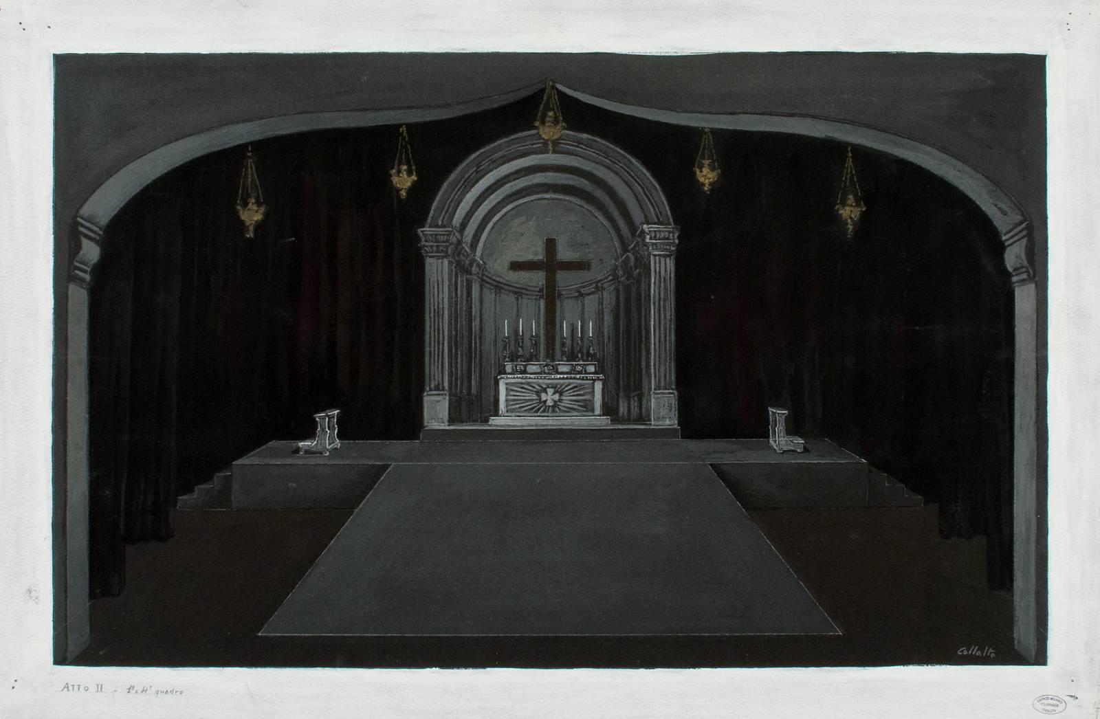 Bozzetto scenografico per I dialoghi delle carmelitane, opera di Francis Poulenc, prima rappresentazione 23 novembre 1957, Teatro Comunale Giuseppe Verdi Trieste, regia di Franco Enriquez