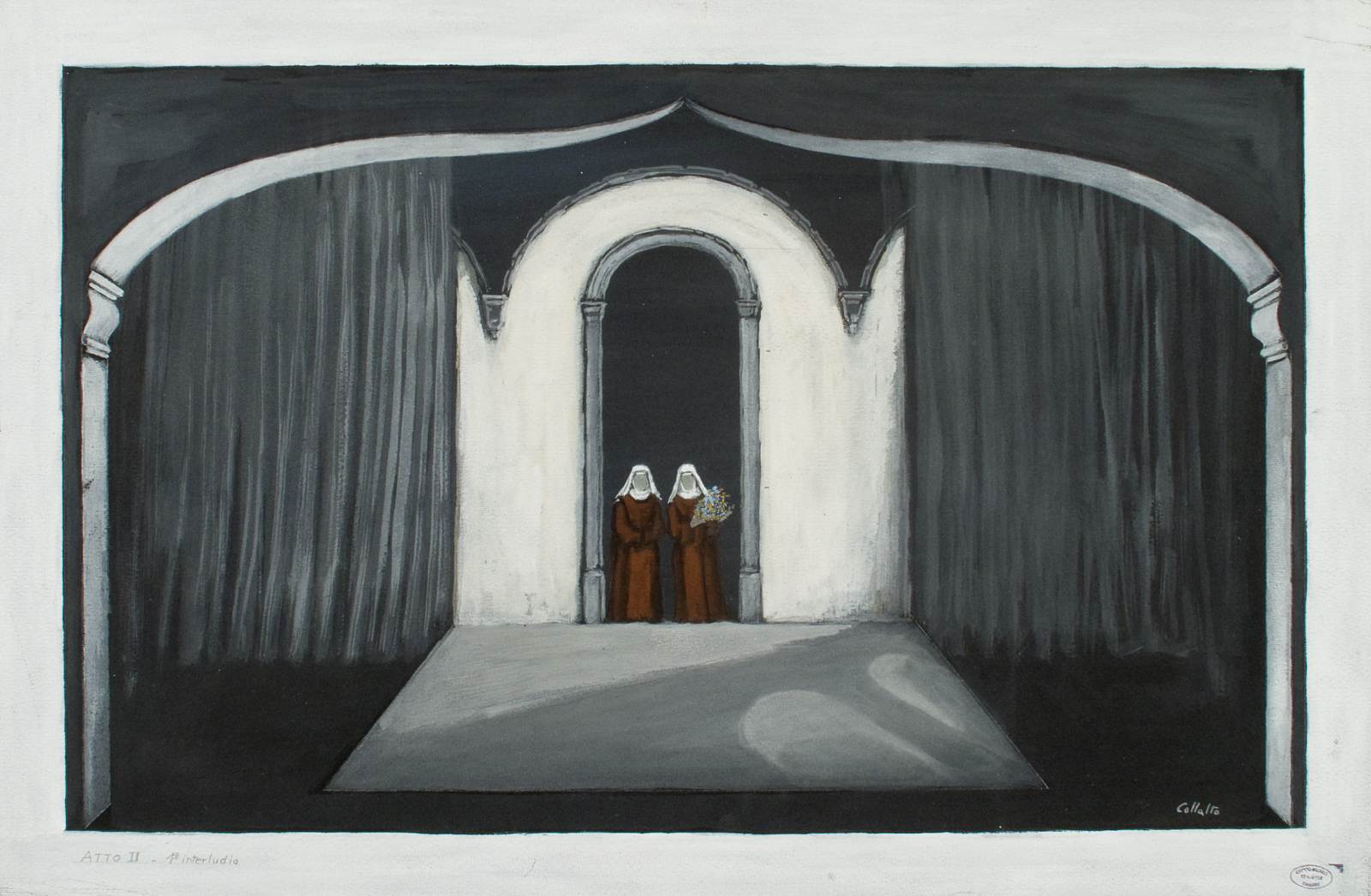 Bozzetto scenografico per I dialoghi delle carmelitane, opera di Francis Poulenc, prima rappresentazione 23 novembre 1957, Teatro Comunale Giuseppe Verdi Trieste, regia di Franco Enriquez