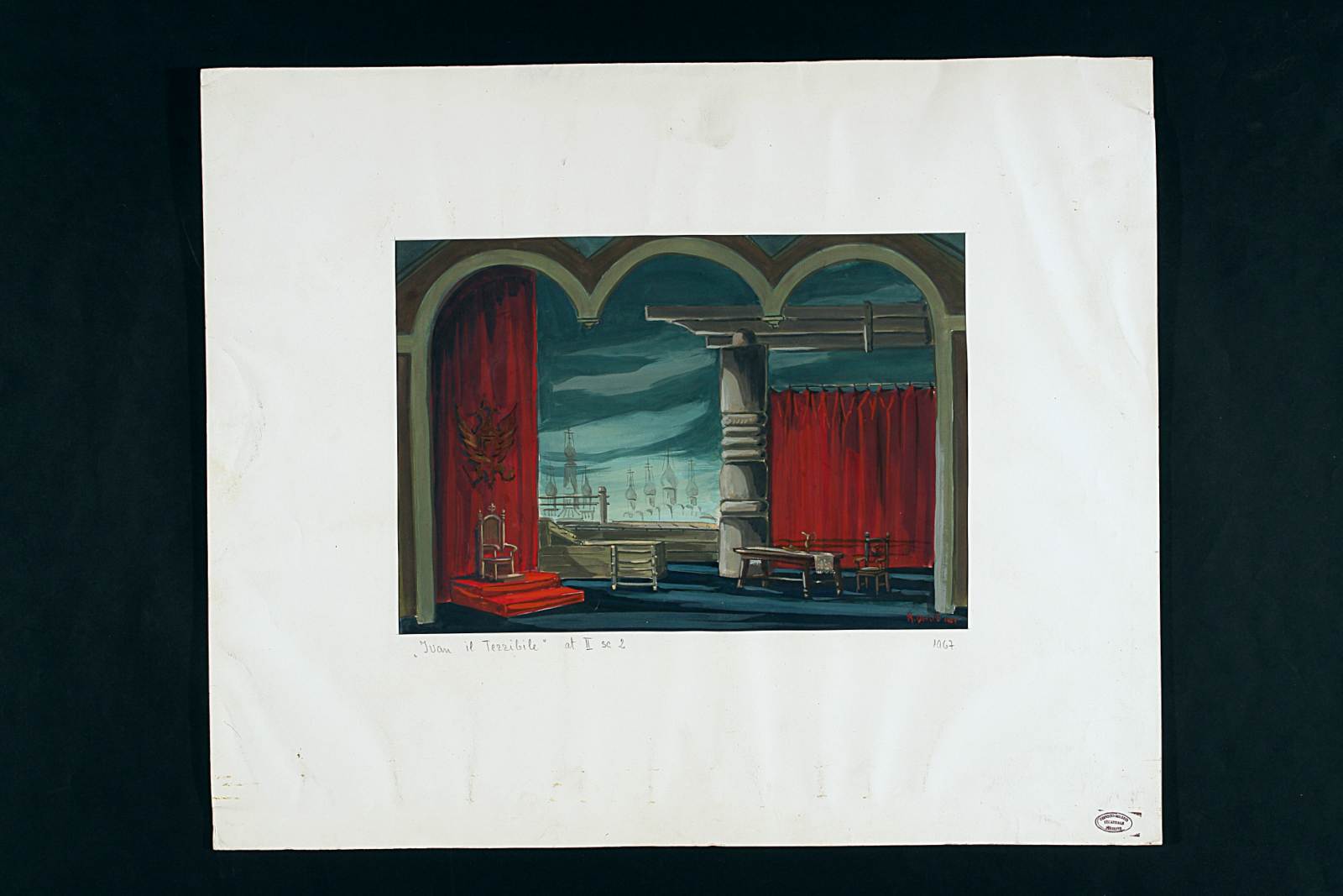 Bozzetto scenografico per Pskovitianka (Ivan il terribile), opera di Nikolaj Andreevič Rimskij-Korsakov, prima rappresentazione 13 gennaio 1968, Teatro Comunale Giuseppe Verdi Trieste, regia di Mladen Sablic