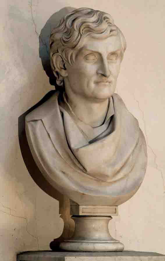 Il busto di Newton è collocato lungo la parete che affianca l’ultimo tratto dello scalone che porta al secondo piano di Palazzo Revoltella. Alternati a bassorilievi bronzei di carattere simbolico, che sono disposti anche sulle pareti del vestibolo e che rappresentano Scienze ed Arti, troviamo infatti i busti di quattro filosofi vissuti fra Cinque e Settecento: René Descartes (La Haye 1596 - Stoccolma 1650, il cui nome latinizzato è Renatus Cartesius, in Italia modificato in Cartesio), Galileo Galilei (Pisa 1564 - Arcetri 1642), Gottfried Wilhelm von Leibniz (Lipsia 1646 - Hannover 1716) e Isaac Newton (Woolsthorpe 1643 - Kensington 1727). A questi si alternano le rappresentazioni di Poesia, Pittura, Architettura, Scultura, Musica (mentre le rappresentazioni di Storia, Fisica, Astronomia, Matematica, Chimica e Geografia sono distribuite nel vestibolo). Per quanto riguarda le fisionomie dei filosofi rappresentati, c’è da dire che sono confrontabili con altri ritratti e risultano rispondenti. In particolare si può osservare: il volto di Cartesio in un dipinto di Frans Hals del 1648, quello di Galilei in un’opera di Domenico Cresti o Crespi, detto il Passignano, datata ante 1642; Leibniz è riconoscibile sulla base del dipinto di Bernhard Christoph Francke (datato attorno al 1700), mentre i lineamenti di Newton trovano riscontro in un’opera di Godfrey Kneller del 1702. Queste opere fanno parte della decorazione voluta da Pasquale Revoltella per il suo palazzo di città. Più precisamente il programma iconografico, «soprattutto nei vani di passaggio e nelle sale di rappresentanza, è incentrato sul tema del progresso e del valore delle scienze e delle arti come fattori di sviluppo economico, tema che, in perfetta coerenza con la cultura positivista del suo tempo, rispecchia il pensiero di Revoltella e ne ispira costantemente l’azione, così nell’amministrazione delle sue imprese come nelle iniziative di carattere politico» (Masau Dan). Si inseriscono dunque perfettamente in questo progetto i quattro busti, realizzati da Luigi Ferrari probabilmente negli anni di costruzione del palazzo, tra il 1854 e il 1858 e che hanno di conseguenza come termine ante quem il 1858, quando il palazzo risulta pronto e completo di tutto l’apparato decorativo.