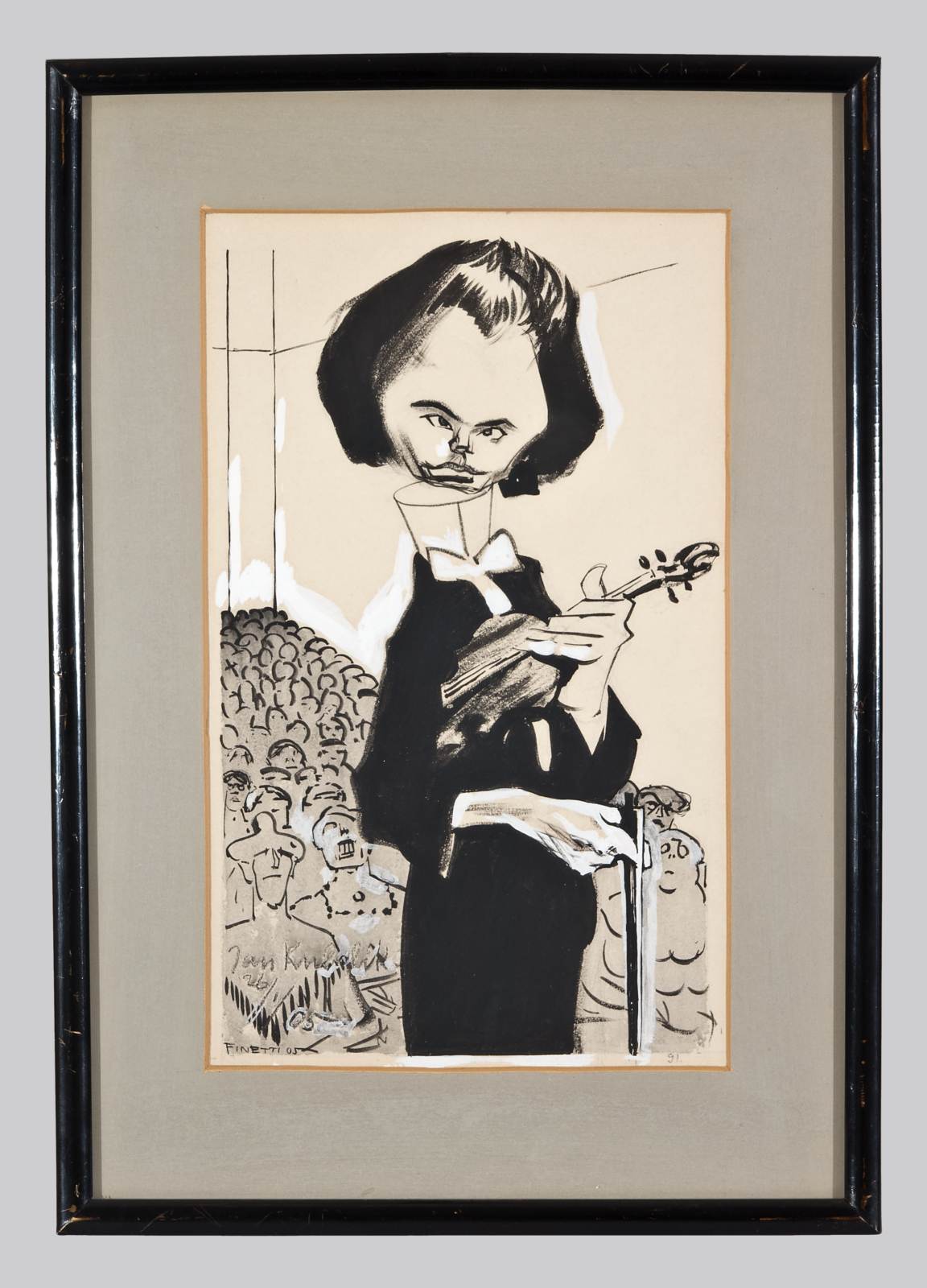 Il celebre violinista è qui ritratto in modo caricaturale. Indossa un elegante abito nero dal rigido ed alto colletto bianco. Alle sue spalle una nutrita folla di persone, rese in modo sommario e grottesco, aspettano di sentire la musica provenire dal violino che tiene stretto tra le mani