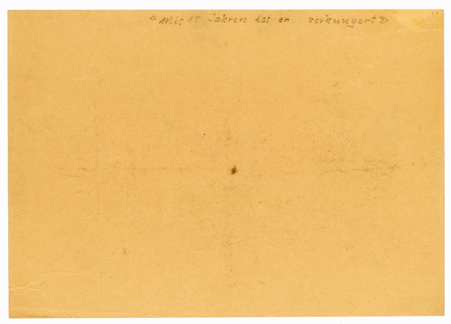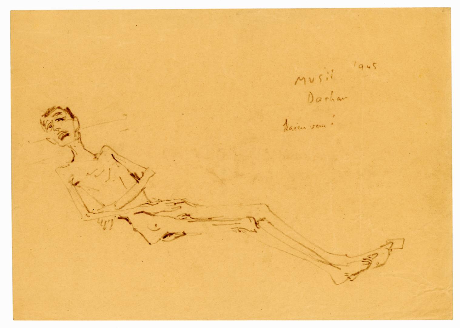 Sul recto è trascritta la firma, il luogo e la data: Mušič Dachau 1945 Sul verso vi è una nota manoscritta a matita “Mit 15 Jahren ist er verhungert” (A 15 anni è morto di fame)