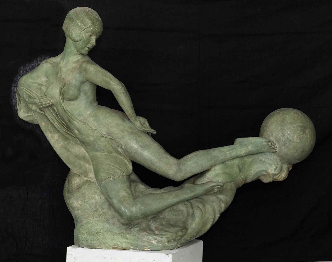 Dopo un apprendistato presso la bottega dello scultore decoratore Giuseppe Varidovich, Romeo Rathmann si formò, come quasi tutti gli artisti della sua generazione, alla Staatsgewerbeschule (Scuola Statale Industriale), che egli frequentò dal 1895 al 1896. L’elegante figura femminile in gesso verde, graziosamente adagiata sull’onda stilizzata, testimonia l’adesione di Rathmann allo stile liberty, che egli apprezzava particolarmente: «D’altronde, lo stile moderno che da un paio d’anni andava prendendo grande importanza nei maggiori centri artistici d’Europa ed era denominato: stile Floreale dall’italiani, Secession dai francesi, Liberty dall’inglesi, venvia sempre più usato anche a Trieste, dai giovani architetti. Io avendo seguito con molto interesse lo sviluppo e l’interpretazione che veniva dato nei vari paesi, aveo compreso che offriva un vastissimo campo di nuove creazioni, perciò lo prediligevo ad ogni altro stile» (CMR, Arch. Art., cartella Rathmann). Ai primi di maggio del 1900, il giovane scultore, che continuva a lavorare presso il Varidovich, portò i suoi lavori al Museo Revoltella, dove venivano esposte le opere dei partecipanti al concorso Rittmeyer, grazie al quale egli ottenne la borsa di studio biennale all’Accademia di Roma, dove ebbe l’opportunità poi di risiedere anche per un terzo anno. Nella capitale Rathmann frequentò lo studio dello scultore Giulio Monteverde e potè conoscere i monumenti antichi, ma anche fare esperienza presso i grandi cantieri allora in costruzione, come il Monumento a Vittorio Emanuele o il Palazzo di Giustizia. Vista la grave crisi locale di commissioni, nel 1909 lo scultore triestino partì per Londra, dove collaborò per moltissimi anni con lo stabilimento di scultura decorativa J. Whitehead & Son contribuendo alla decorazione di numerosi edifici della metropoli inglese. Al Museo Revoltella si conservano numerosi quaderni di schizzi e bozzetti, nei quali l’artista dalla «grazia liberty» era solito tracciare a matita delle figure sinuose ma dal plasticismo ben strutturato, possibili prove per la realizzazione di sculture decorative di grandiosi edifici.