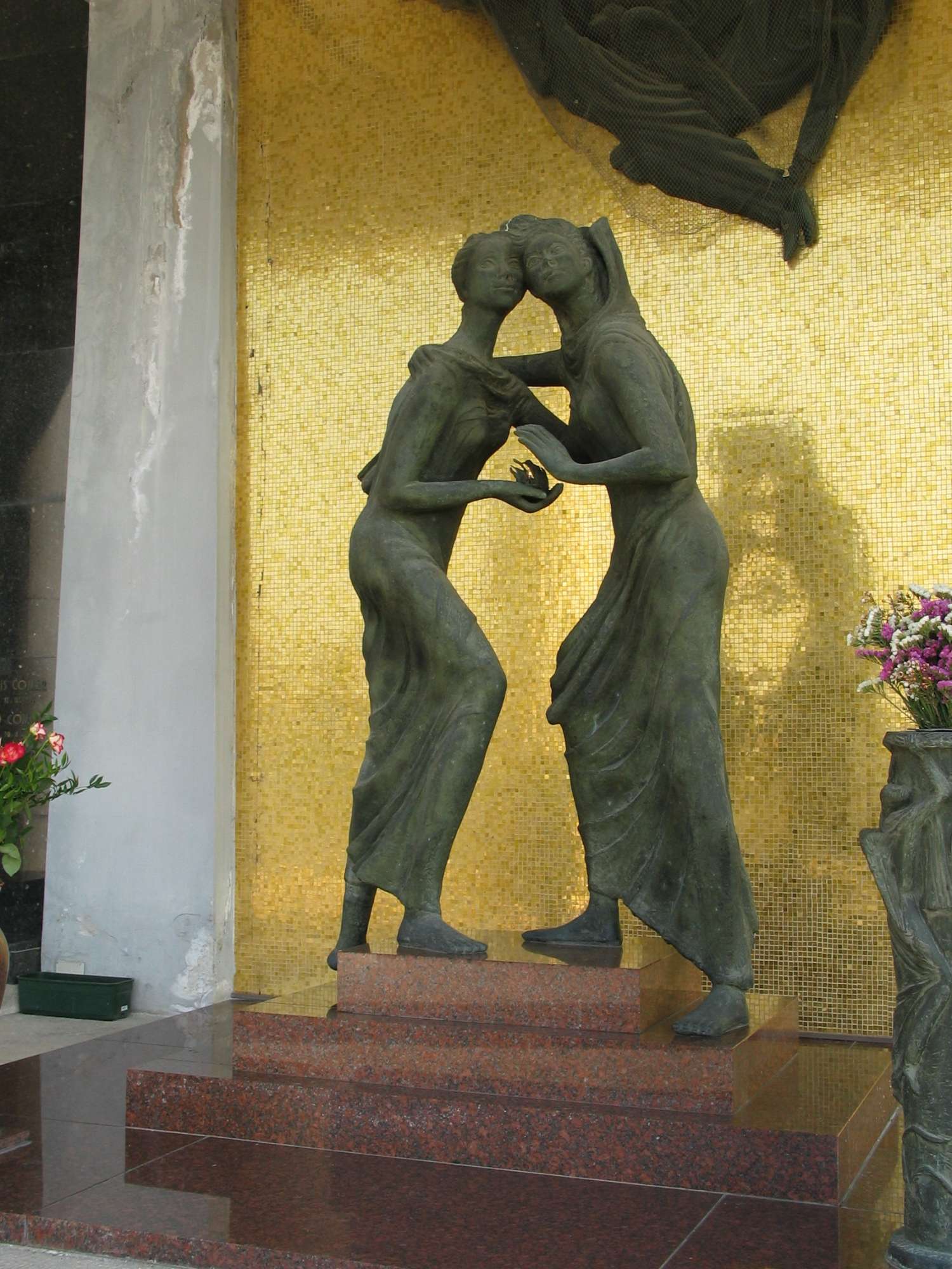 Su un basamento a tre gradini sono due figure femminili, la Fede e la Speranza, in atto di abbracciarsi; alle loro spalle, sulla sommità della dorata parete di fondo, sta un gruppo di angeli musicanti in volo. Sulla destra è posizionato un grande vaso decorato a rilievo con angeli di spalle nell'atto di sorreggere una ghirlanda.