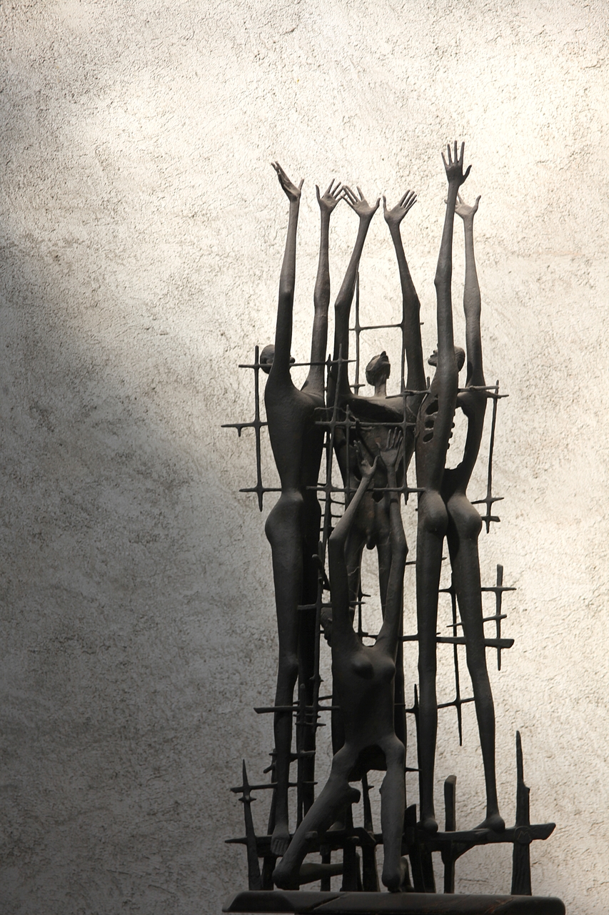 Il gruppo scultoreo fu presentato in un primo abbozzo nel luglio del 1957 al concorso internazionale per la realizzazione di un monumento da erigere in prossimità del campo di concentramento di Auschwitz ed era pensato per essere inserito in apparato architettonico ideato da Antonio Costa. Il progetto superò la prima selezione ma venne escluso dalla seconda tornata concorsuale. L'opera venne realizzata dopo la visita dell'artista ad Auschwitz-Birkenau. Le figure scarnificate rappresentate sono riferibili alle immagini sconvolgenti e ben note dei cadaveri o dei sopravvissuti. L'opera fu acquistata dal Comune di Trieste per 8.000.000 lire e posta nella Sala delle Commemorazioni della Risiera di San Sabba in data 22.6.1975.