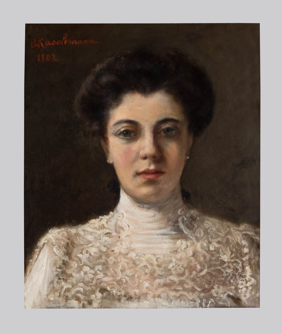 Il dipinto venne realizzato nel 1902 da Bianca Kaschmann che in questo ritratto raffigura la madre, Emma Vicentini, cantante triestina che, nel 1883, a Napoli sposa il celebre baritono Giuseppe Kaschmann
