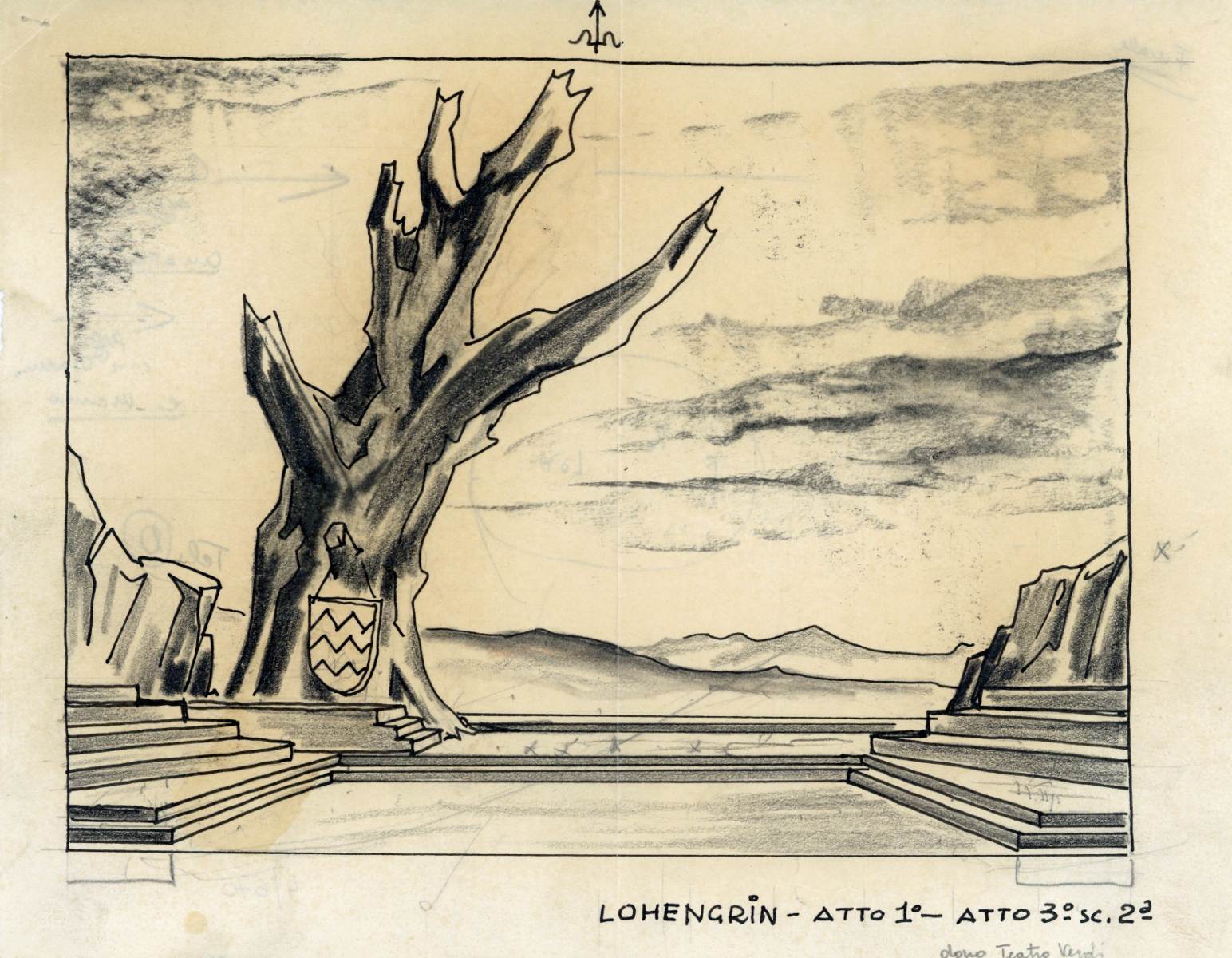Lohengrin, opera di Richard Wagner, prima rappresentazione 22 marzo 1965, Teatro Comunale Giuseppe Verdi Trieste, regia di Enrico Frigerio
