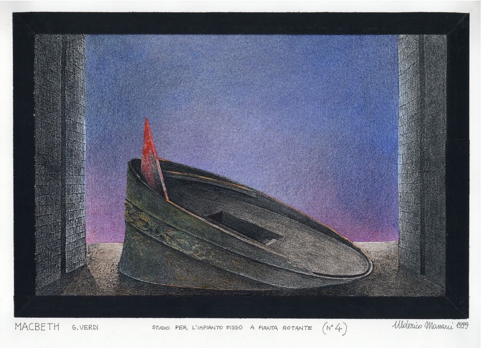 Macbeth, opera di Giuseppe Verdi in allestimento per direzione di Mario Licalsi al Teatro Verdi di Trieste, in realtà lo spettacolo non fu mai rappresentato e restò in fase di progettazione