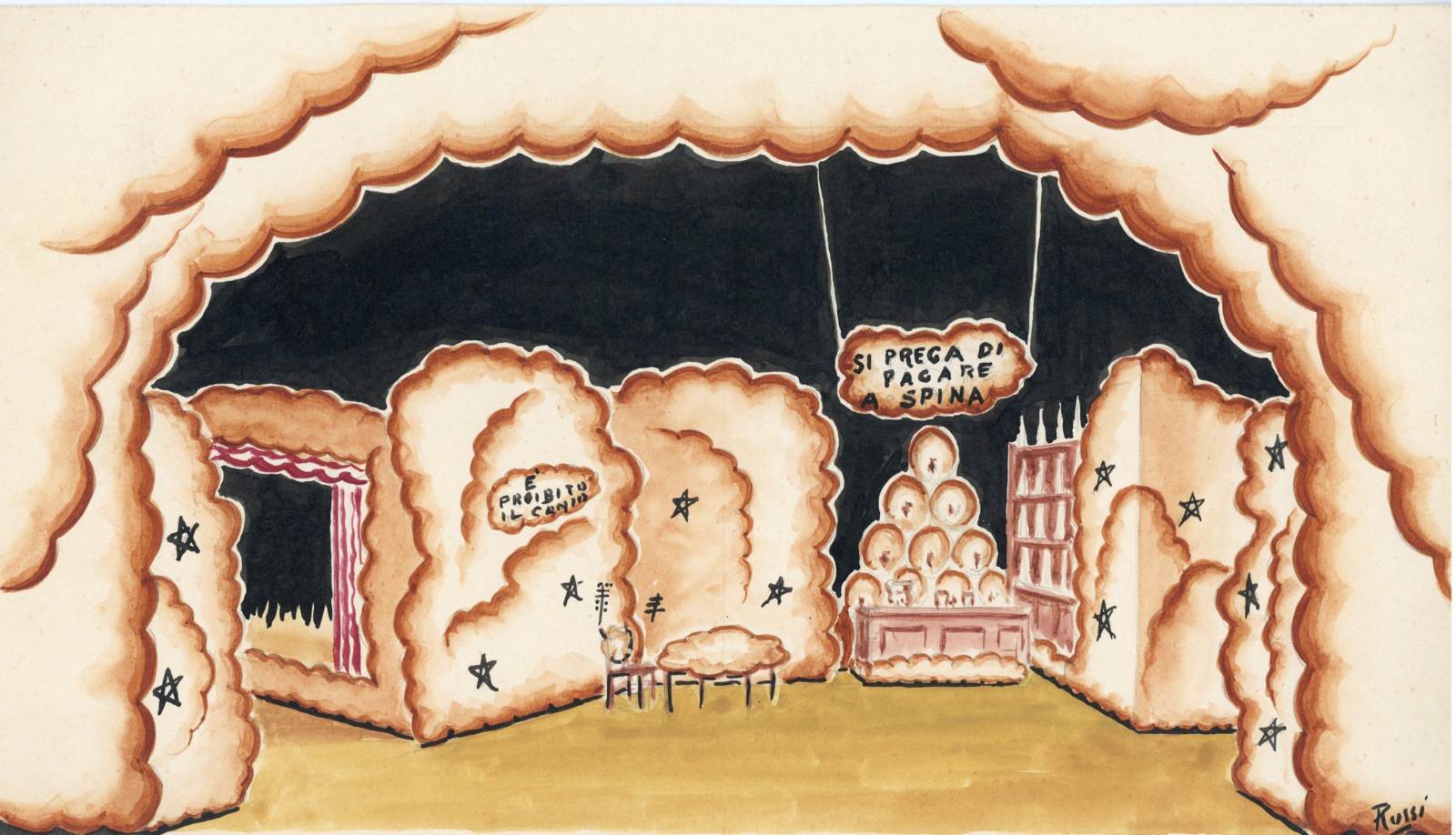 L'osteria degli immortali, testo teatrale di Mario Massa, scenografie di Carolus Cergoly e Giacomo Rossi junior, Trieste, Teatro del Dopolavoro, Sala Massima via del Coroneo 15, 28.05.1936