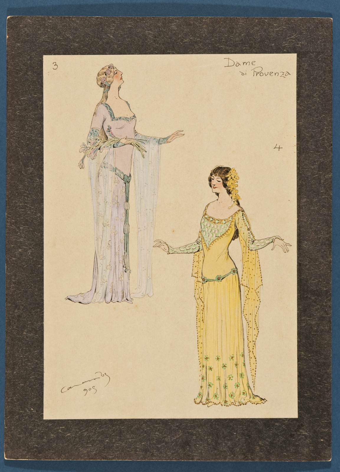 Melisenda, azione lirica di Carlo Merli, figurino per Dame di Provenza