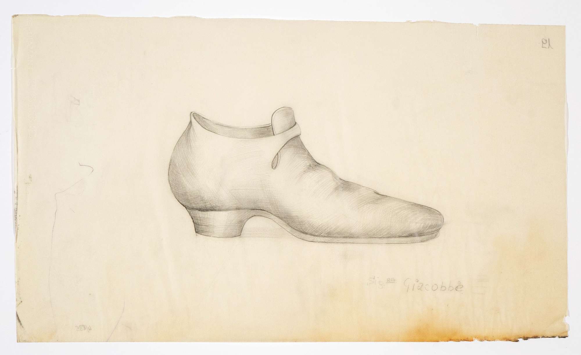 Il gioco dei potenti, libero adattamento di Giorgio Strehler da Enrico VI, dramma storico di William Shakespeare, in 15 atti e 2 giornate. Calzatura con tacco basso e punta larga, di profilo verso destra.