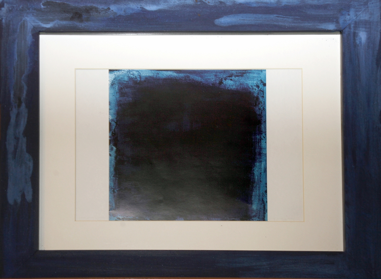 Un quadrato blu scuro con una cornice più chiara, in basso sembra alzarsi un fumo.