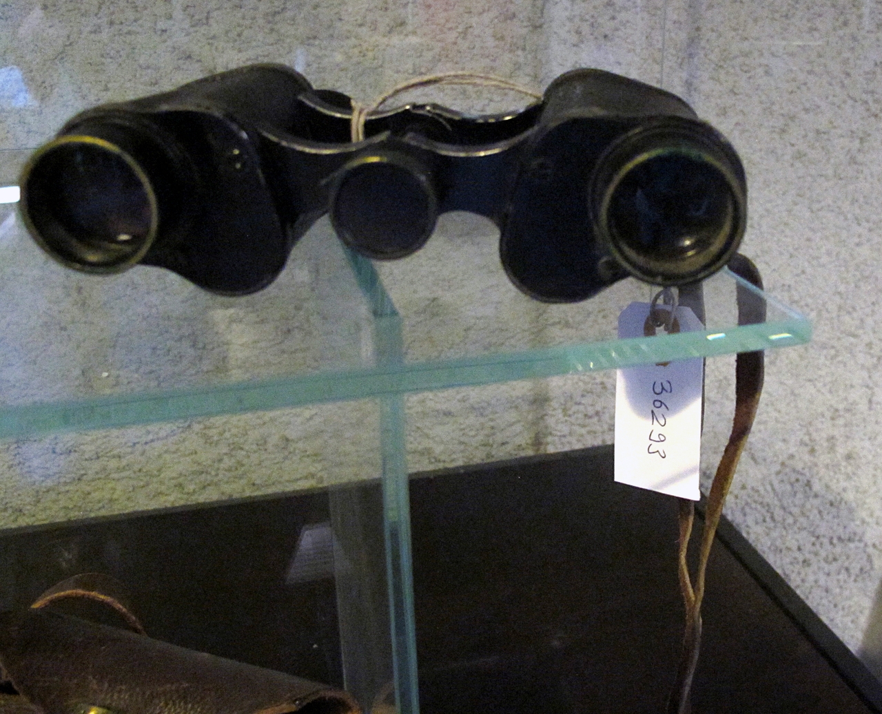 Si tratta di un binocolo di colore nero con cordino in pelle marrone e custodia, anch'essa in pelle marrone.