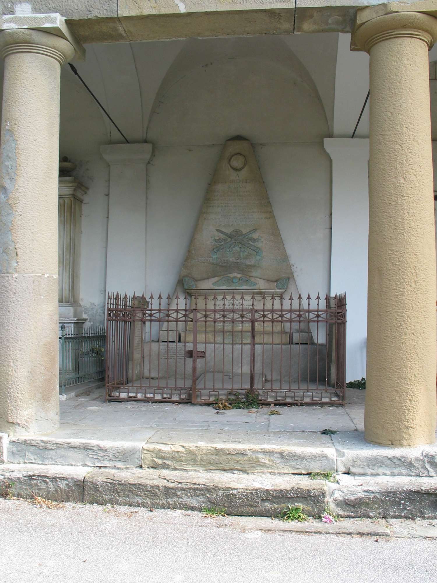 La tomba è stata concessa il 01.12.1831 a Carlo Luigi Chiozza (Archivio Acegas APS). Il dedicatario Luigi Chiozza (1754-1831), ricco industriale nato a Loano (SV) nel 1754, fu uno degli immigrati che nella seconda metà del Settecento contribuirono alla crescita economica ed urbanistica di Trieste: fondò infatti un prospero stabilimento di produzione di saponi e nel 1805 fu il committente del palazzo a portici noto come "palazzo dei volti di Chiozza" tra le attuali via Carducci, viale XX Settembre, via del Toro e via Crispi, demolito dopo la Prima guerra mondiale e ricostruito dagli architetti Giorgio e Carlo Polli.