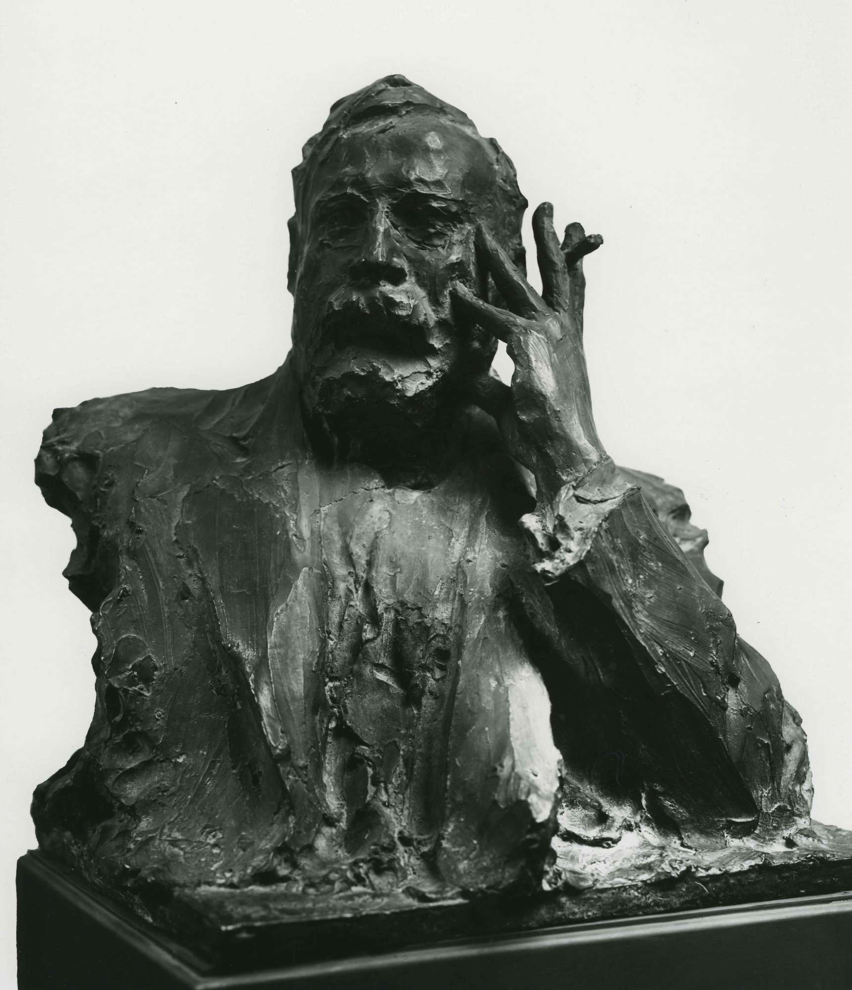 «Mi pregio di comunicare – scrive il podestà Alfonso Valerio al Curatorio del Museo Revoltella – che il signor Rodolfo Brunner, nell’intento di arricchire le collezioni di belle arti della città, ha acquistato recentemente un busto in bronzo dell’illustre scultore Paolo Troubetzkoy, rappresentante uno dei maggiori artisti concittadini, e lo ha donato al Comune, destinandolo al Civico Museo Revoltella» (CMR, Arch. Amm., 5.1914.2571). L’elogiato artista concittadino era Arturo Rietti che Troubetzkoy, figlio di un principe russo e di una cantante americana, ebbe modo di conoscere nel corso del suo lungo soggiorno a Milano (1884-1897), frequentando i salotti dei nobili e ricchi borghesi e il vivace ambiente artistico, di cui condivise, similmente a Rietti, lo spirito fortemente innovativo e antiaccademico. Lo scultore, autore di numerosi ritratti di personaggi illustri italiani e stranieri (da Giacomo Puccini a Tolstoj a George Bernard Shaw), era ben noto a Trieste, poiché presente in diverse occasioni espositive locali con opere che «scandalizzavano» la critica locale, che non comprendeva il suo «fare trascurato». Lo stesso con cui Troubetzkoy raffigura anche il ritratto bronzeo di Arturo Rietti, dalla superficie mossa e sfaccettata, ricca di palpitanti vibrazioni luminose. «C’è un grande ospite nel mezzo della sala – si legge in relazione alla mostra alla Permanente del 1914 – un’opera di scultura, un bronzo di quel geniale maestro dell’arte moderna che è Paolo Troubetzkoy, un bronzo che ha superbe linee di movimento, che ha una vigorosa, salda struttura plastica, un’animazione di schietta e immediata naturalezza. È il ritratto del pittore Rietti [...]. La fattura a tratti sommaria, quasi a rapidi nervosi colpi di pollice o di paletta, con disordinata plasmatura della materia, dà di primo acchito un’immagine scomposta, una sensazione di agitato che sembra impedire una serena contemplazione dell’opera d’arte. Ma quando si guardi il busto attentamente, quando si cerchi d’aggiungere agli effetti di plastica quelli di chiaroscuro voluti dall’autore, quando si veda la robusta solidissima modellazione di alcune parti, l’equilibrio delle masse, l’ordine dei piani, si scorge che in quel bronzo al di là delle particolarità stilistiche che si possono giudicare secondo il gusto, ci sono virtù magistrali di vera e propria scultura» («Il Piccolo», 7 febbraio 1914).