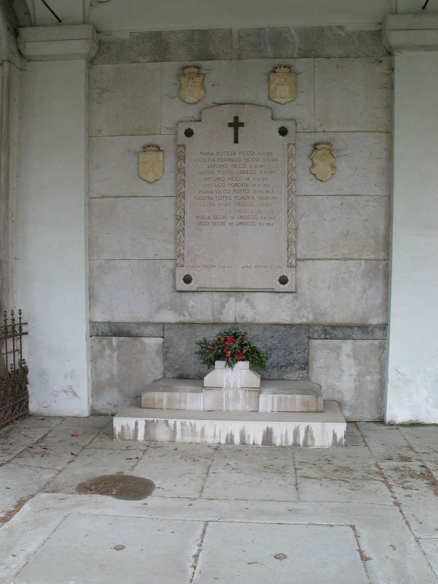 La tomba è stata concessa il 25.12.1871 a Antonio de Vicco ed il 31.03.1945 a Maria Segrè (Archivio Acegas APS).