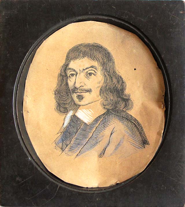 Nel registro inventariale, al presente numero, è descritto un ritratto in miniatura su avorio di “Ufficiale ignoto - busto/ divisa di epoca napoleonica”, firmato lungo il margine destro “A. Castro fecit”, pervenuto nelle collezioni civiche il 23 luglio 1932. L'opera era posta in una cornice nera con cerchietto dorato. Tuttavia attualmente, al numero inventariale in oggetto corrisponde un’effigie a stampa del filosofo francese René Descartes, tratta con tutta probabilità da una pubblicazione ottocentesca.