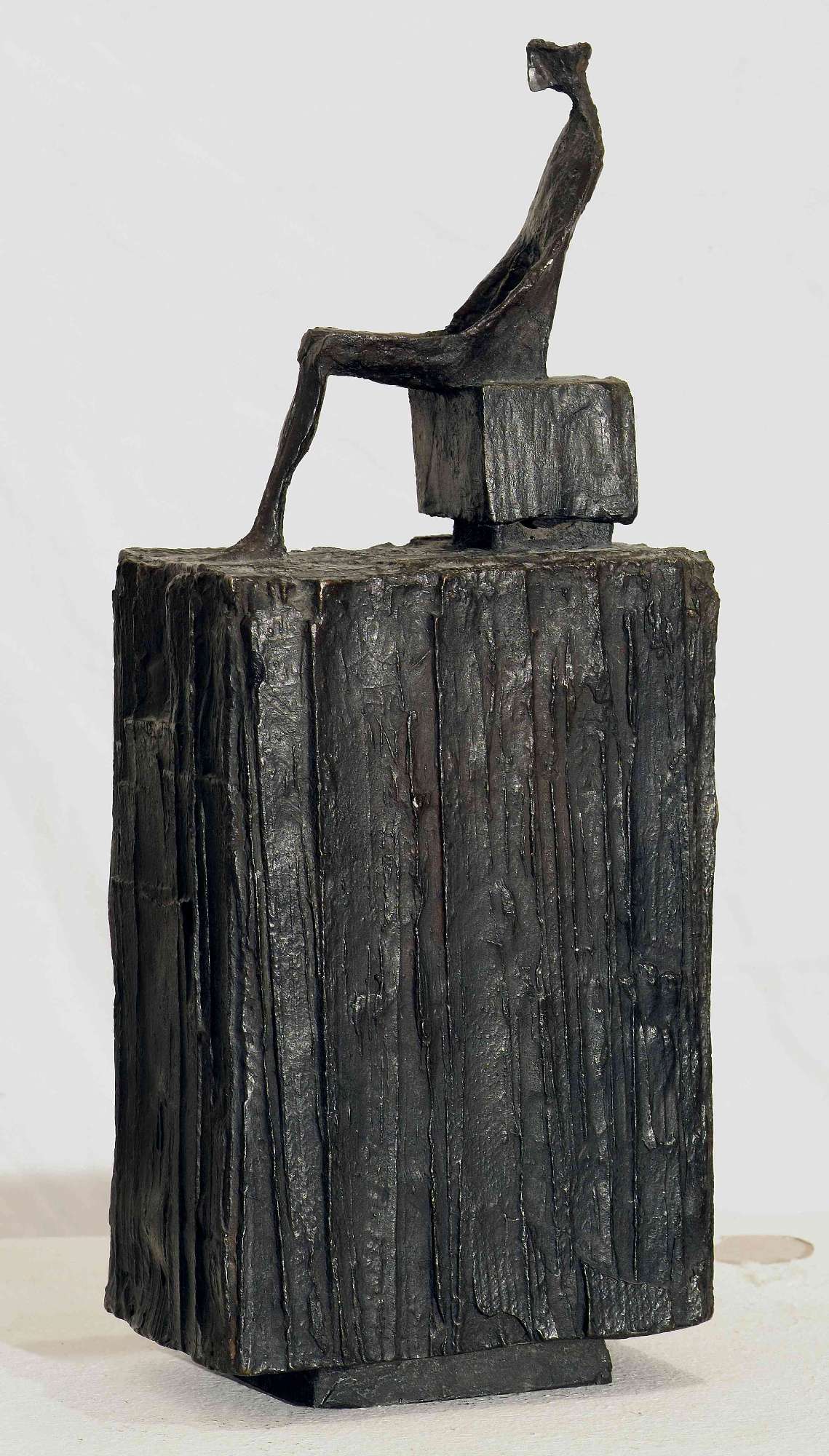 Questo piccolo bronzo fu acquistato dal Museo Revoltella alla Biennale di Venezia del 1958 dove Negri, sull’onda del successo ottenuto l’anno precedente con l’esordio espositivo alla Galleria del Milione di Milano, era stato invitato con una sala personale. Vi aveva esposto ventisette lavori del triennio 1955-58 ed era stato presentato in catalogo dal critico Luigi Carluccio. Quest’ultimo, che aveva condiviso con Negri la tragica esperienza del campo di concentramento, aveva sottolineato come molti dei suoi lavori degli anni Cinquanta fossero stati pensati proprio durante la prigionia, quando l’artista «compilava lunghi elenchi di sculture da fare, contentandosi delle parole per fingersele nei minuti particolari, già legate ciascuna alla sua materia giusta: il legno o la cera, il marmo o il bronzo». Negri si avvicinò alla scultura nel 1947, dopo aver studiato per alcuni anni architettura. Vi si dedicò con continuità e impegno crescente a partire dal 1954. Negli anni Cinquanta realizzò bronzi di piccole dimensioni raffiguranti quasi sempre figure femminili, come nell’opera in esame. Quest’ultima riscontrò grande successo alla Biennale di Venezia, tanto che, per far fronte alle diverse richieste pervenutegli, lo scultore pensò di eseguire più copie della stessa. Venuto a conoscenza di ciò, il Curatorio del Museo Revoltella decise di ritirare l’offerta d’acquisto, desiderando possedere – come si evince dal verbale della seduta del 22 gennaio 1959 – un «unicum e non un soggetto ripetuto in copie». Tuttavia, dopo aver ricevuto una lettera dell’artista che riferiva l’esistenza di due soli esemplari, il museo riconfermò l’acquisto. "Figura sola" è un’opera particolarmente rappresentativa dello stile di Negri, che aveva affermato di non voler rappresentare la vitalità del movimento e dell’azione fisica, ma «una chiusa energia, una intensa vita per se stessa...». Studiando il rapporto tra forma, linea di contorno e spazio circostante, l’autore ha ottenuto una composizione architettonica nelle quale è riuscito a far convivere leggerezza e monumentalità, giocando sul rapporto tra la figura e la base su cui poggia. Per quest’ultimo aspetto è stato spesso rilevato il legame con la plastica di Giacometti, anche se le immagini di Negri sono esili ma non filiformi e il loro isolamento nello spazio, come ha evidenziato Carluccio, «è segno di distinzione anziché di sperduta misantropia».