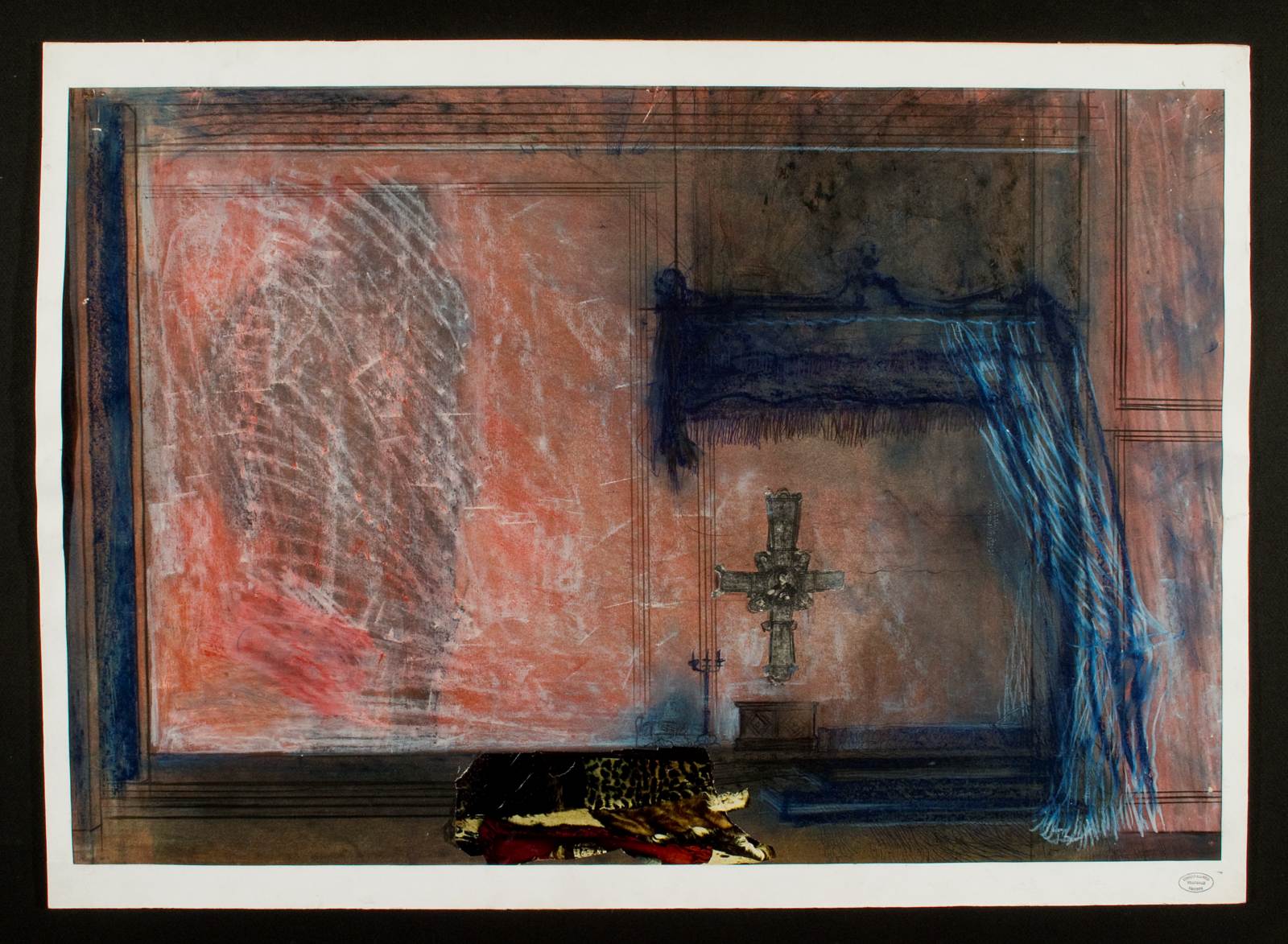Bozzetto scenografico per Il convitato di pietra, opera di Aleksandr Sergeevič Dargomyžskij, prima rappresentazione 6 marzo 1969, nuova per Trieste, Teatro Comunale Giuseppe Verdi Trieste, regia di Carlo Piccinato