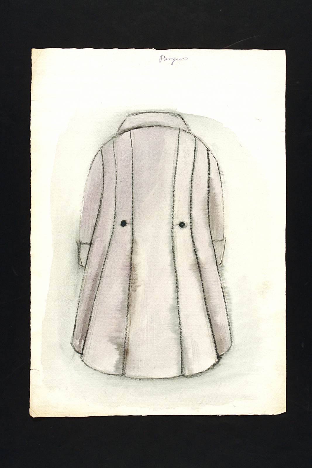 La cagnotte, testo teatrale di Eugène Labiche. Figurino di giacca per Colladan. Redingote grigio chiaro vista da dietro (vedi CMT_OA_4_000408)