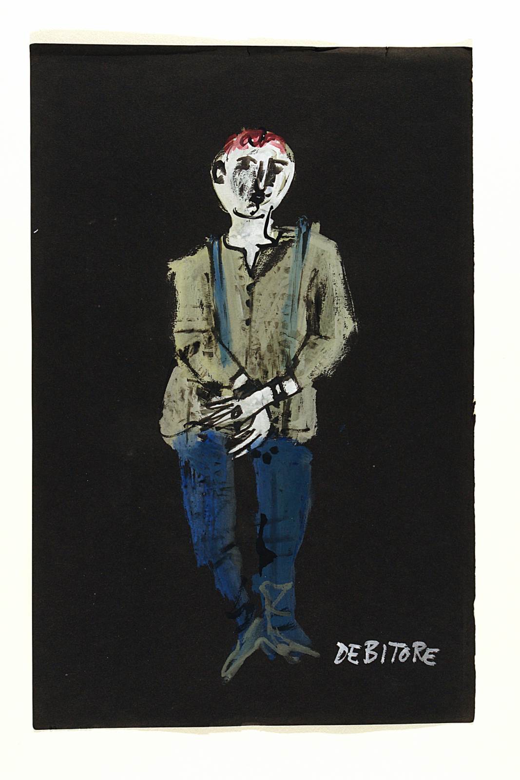 La leggenda di ognuno, testo teatrale di Hugo von Hofmannstahl. Personaggio: debitore in pantaloni blu con bretelle e camicia