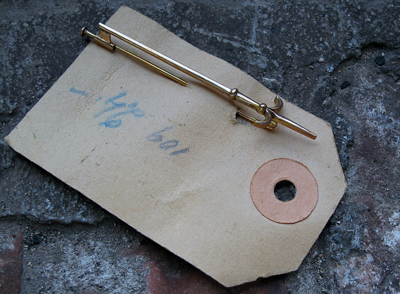 La spilla fa parte del nucleo di oggetti razziati dai nazisti dalle case degli ebrei triestini. Presenta un'alabarda.