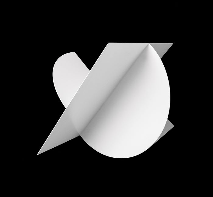Entrata a far parte del patrimonio del Museo Revoltella nel 1995, l’opera documenta una nuova fase della produzione artistica di Alviani, caratterizzata fino alla metà degli anni Sessanta dalla lavorazione delle superfici a testura vibratile, di cui il Museo Revoltella possiede un esemplare dal titolo O.B.J. - AG., acquistato nel 1963. Dal 1967, infatti, alle superfici metalliche «speculari e argentee», l’artista friulano che nel 1962 aveva preso parte all’esposizione “arte programmata” a Milano, su invito di Bruno Munari, incomincia a preferire le superfici opache, forme geometriche primarie dipinte con vernici monocrome, come l’opera in esame, una delle varie versioni esistenti, di periodi e dimensioni variabili, conservate in collezioni private e pubbliche, in Italia e all’estero. «ogni elemento – scrive l’artista – è staccato dall’altro o unito all’altro, quindi stacco o piegatura. Le forme base sono o lineari e spigolose, o circolari e continue. Questo oggetto è basato su due elementi: un cerchio e un quadrato. In ognuno di essi c’è un taglio (una interruzione) e una piegatura. Compenetrando queste due superfici piane si ottiene un volume con molteplici variabili contrapposte ». Le materie preferite da Alviani, in quanto garanzia di fiducia per se stesso, sono fin dal principio «l’aritmetica, la geometria e la geografia, perché potevano e possono essere verificate, controllate ». Giovanissimo frequenta gli studi di architetti, ingegneri e scultori, dove apprende naturalmente il senso del fare. Risale al 1961 la sua prima mostra personale presso la Mala Galerija di Lubiana, in cui espone le sue «superfici metalliche a testura vibratile» (ferro, acciaio e alluminio). Stretto collaboratore a Trieste, negli anni a seguire, dei protagonisti della Galleria La Cavana e del Gruppo Arte Viva, Alviani aderirà inoltre al gruppo internazionale Nouvelle Tendences – Recherches continuelles, istituito nel 1963. Attivo ugualmente, oltre che nell’ambito delle arti visive, nella progettazione architettonica, disegno industriale, grafica, fotografia, scenografia e nella moda, è stato tra i principali promotori al mondo di «un approccio all’arte come forma conoscitiva che, attraverso lo studio dei fenomeni ottici, indaghi le strutture della percezione».