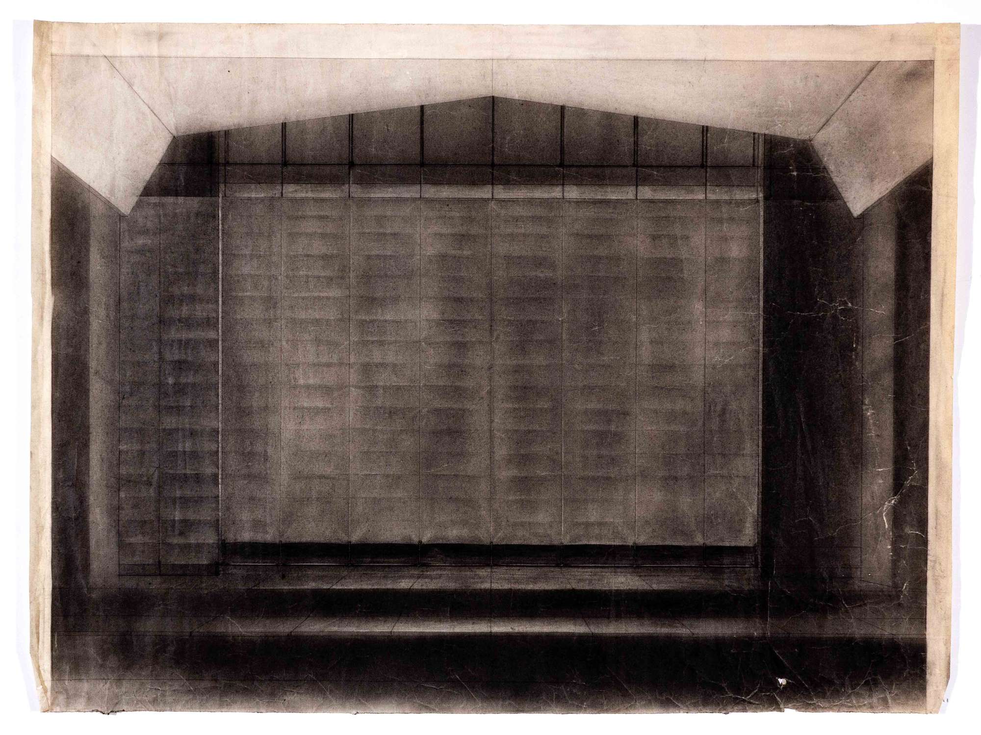 Re Lear, tragedia di William Shakespeare, regia di Giorgio Strehler. Grande telone sospeso e teso su cavi