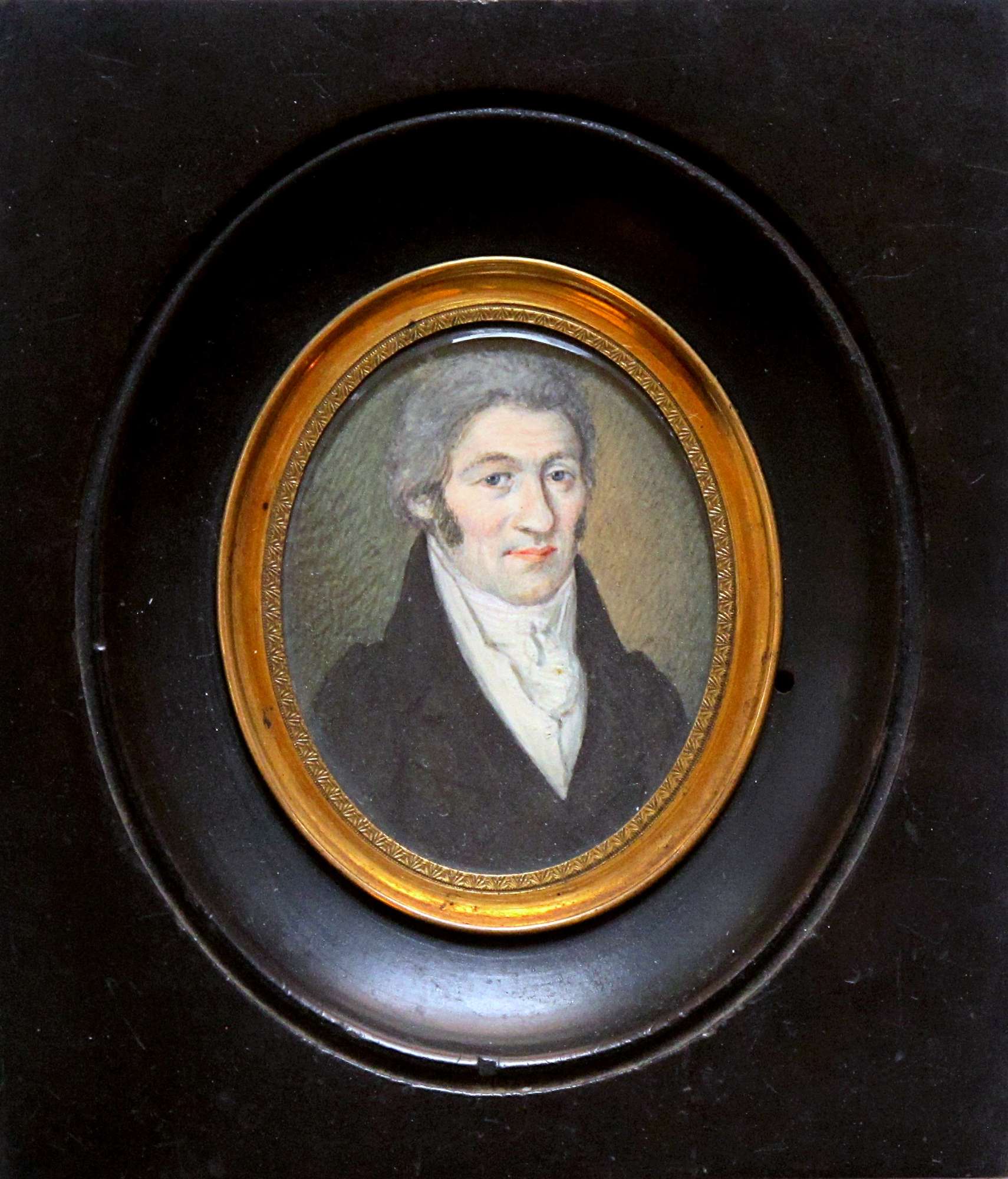La miniatura è stata acquistata nel 1932 da Anna Maria Florio come ritratto di un gentiluomo della famiglia Pollazzi, nonno dei signori Henke, titolari di una cartoleria in via Battisti. L’abbigliamento e l’acconciatura suggeriscono una datazione verso il 1830.