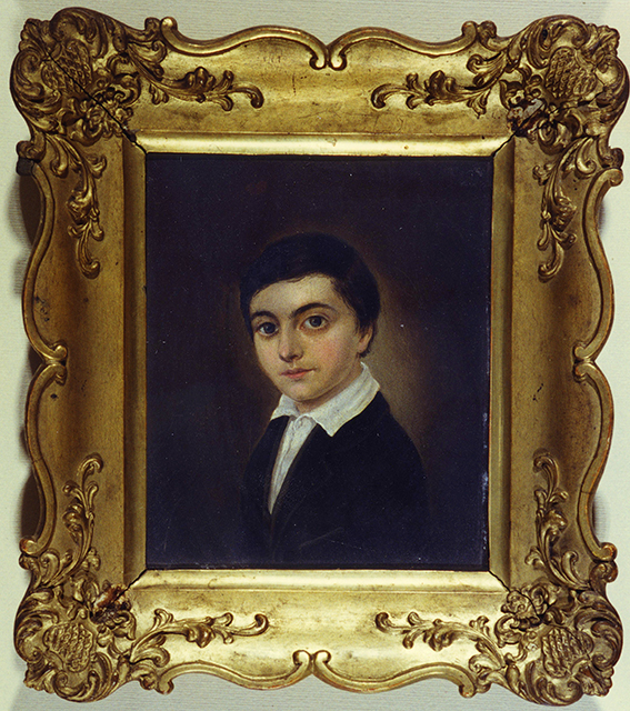 Ritratto di bambino a mezzo busto di profilo sinistro.