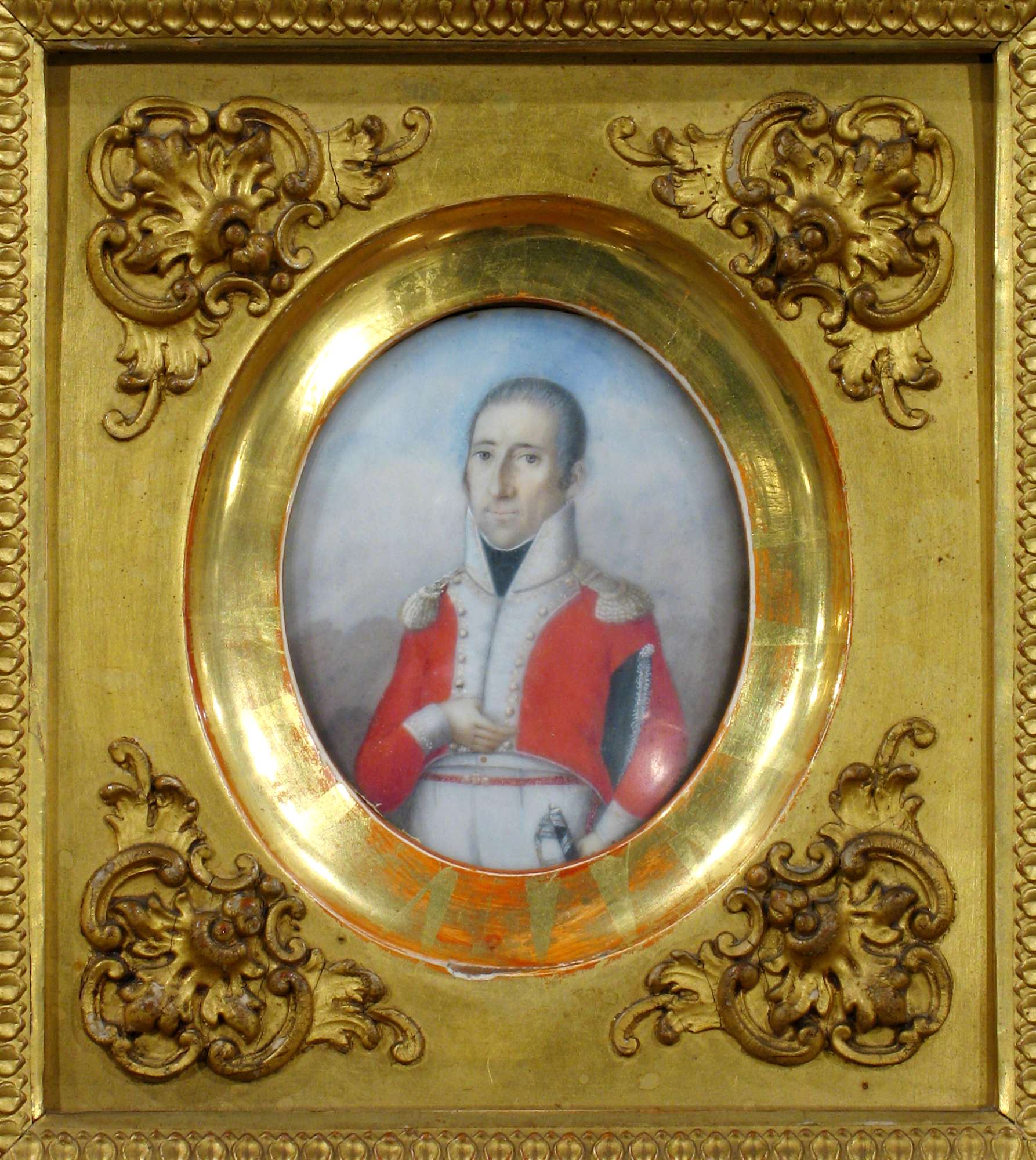 Dando credito all'iscrizione vergata a tergo della cornice, l'uomo effigiato è da riconoscere nel barone Pietro de Burlo (Trieste, 1764-?), figlio di Adamo; negoziante di Borsa, membro della Consulta e assessore del ceto mercantile. Capitano della "Milizia suburbana" nel 1805; membro del Consiglio grande dei Patrizi di Trieste nel 1809. Per un profilo si rinvia a Favetta 1975, p. 69.