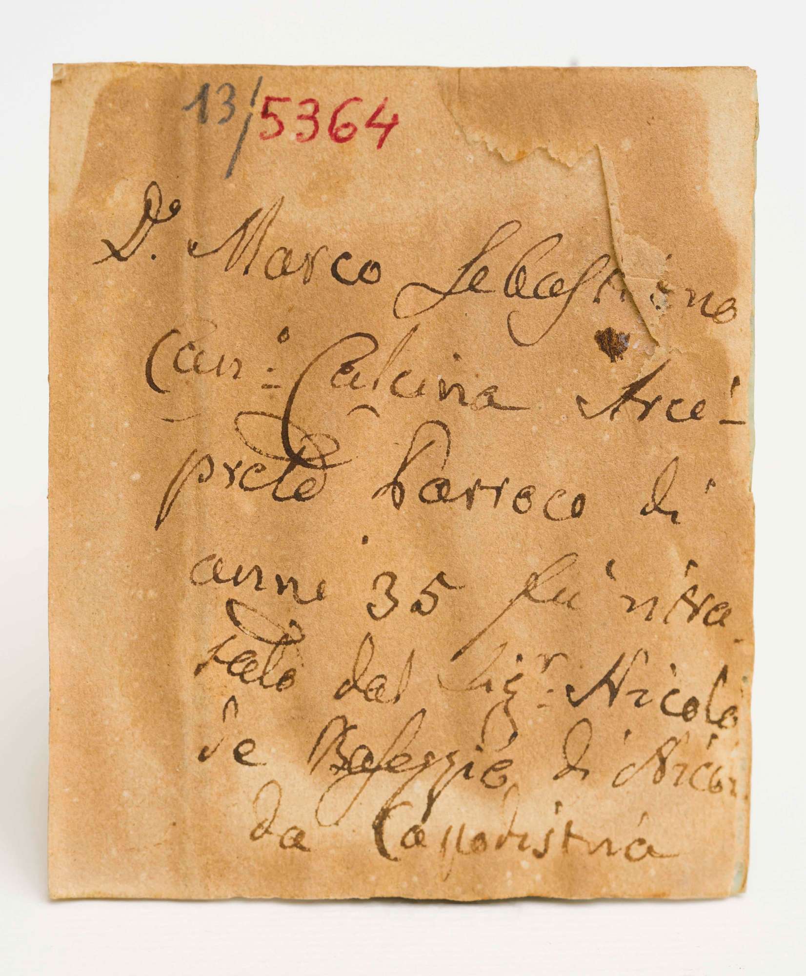 La miniatura, eseguita dal capodistriano Nicolò de Baseggio, ritrae Marco Sebastiano Calcina (1825-1873), canonico arciprete e parroco di Grisignana.