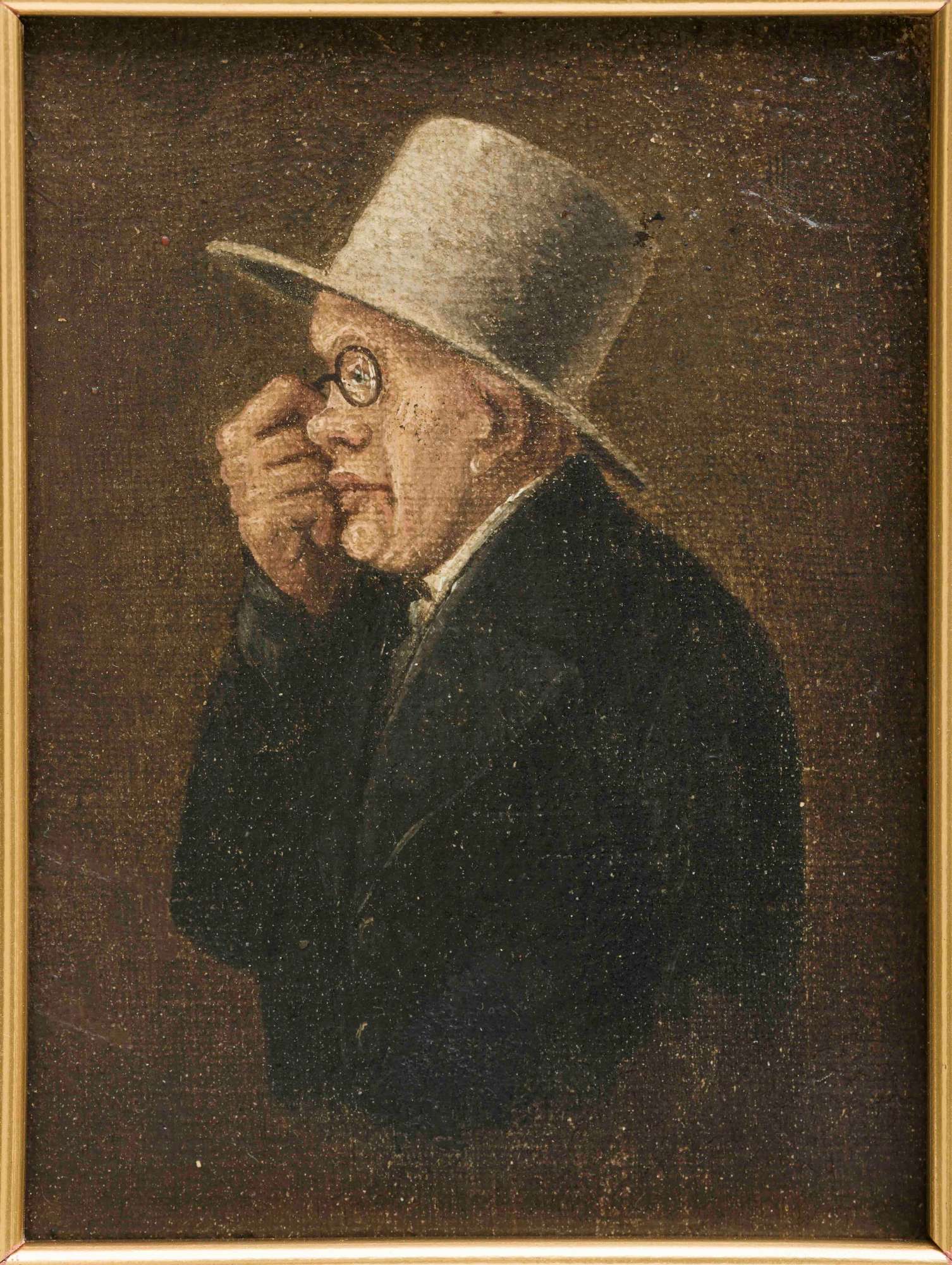 Acquistato nel 1908, il piccolo dipinto ritrae un uomo di profilo intento ad aggiustarsi il pince nez sul naso. Secondo quanto riporta la scheda inventariale del museo, l’identità dell’effigiato è da riconoscersi in Caliman de Minerbi, ma tale proposta è destinata a rimanere ipotetica, mancando opportuni riscontri documentari e iconografici.
