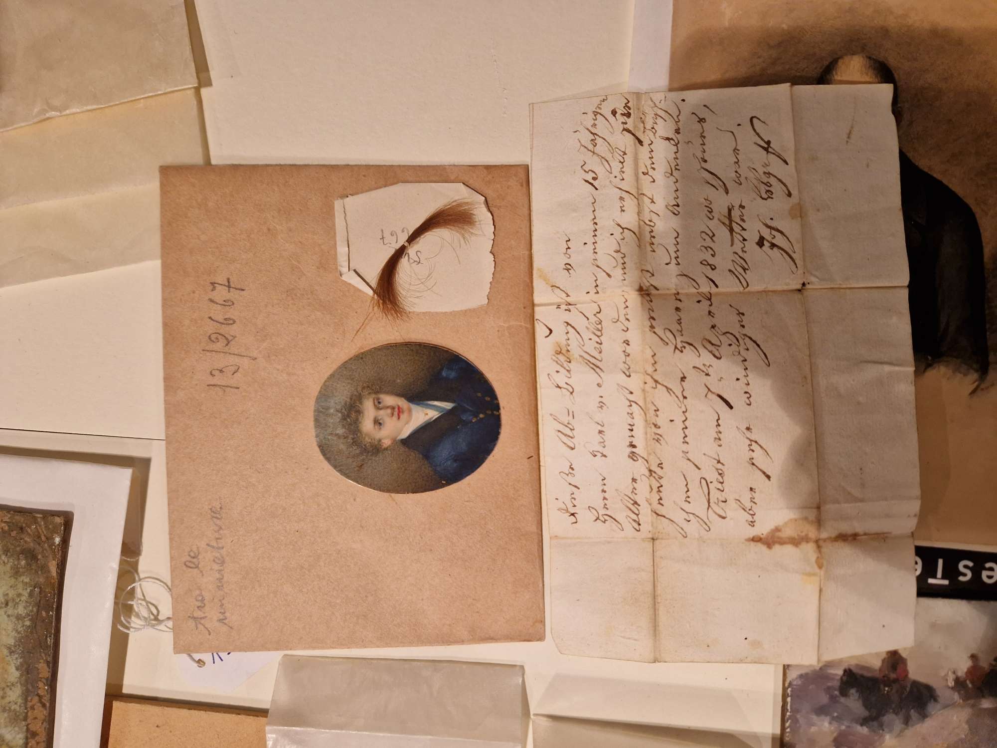 L'ovale, acquistato nel 1933 presso Lucia Pellarin, racchiude il ritratto di un uomo, tradizionalmente identificato in Carlo von Meiller. Esso è conservato entro un foglio piegato recante un testo manoscritto in tedesco, firmato Joh[...] o Jos[...] e datato 7 aprile 1832, assieme a una ciocca di capelli biondi.