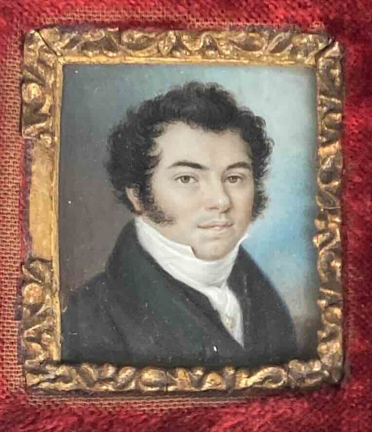 La miniatura ritrae verosimilmente Pietro Sartorio (Trieste 1796-1890), figlio di Pietro e Brigida Borea d’Olmo. Avviato alla carriera mercantile, nel 1816-17 fondò con il fratello Giovanni Guglielmo la filiale di Odessa, che guidò fino al 1829. Nel 1834 sposò Giuseppina Fontana, dalla quale ebbe quattro figli. Si impegnò nella vita pubblica, sostenendo la carica di consigliere municipale (1842-1861), di presidente municipale (1869). Per un profilo si rinvia a Resciniti 2010, pp. 77-80.