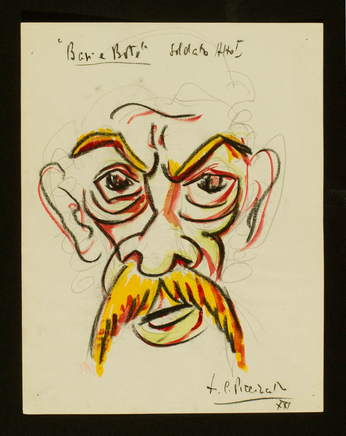 Basi e bote, opera di Riccardo Pick-Mangiagalli. Ritratto caricaturale di soldato, atto 1.
