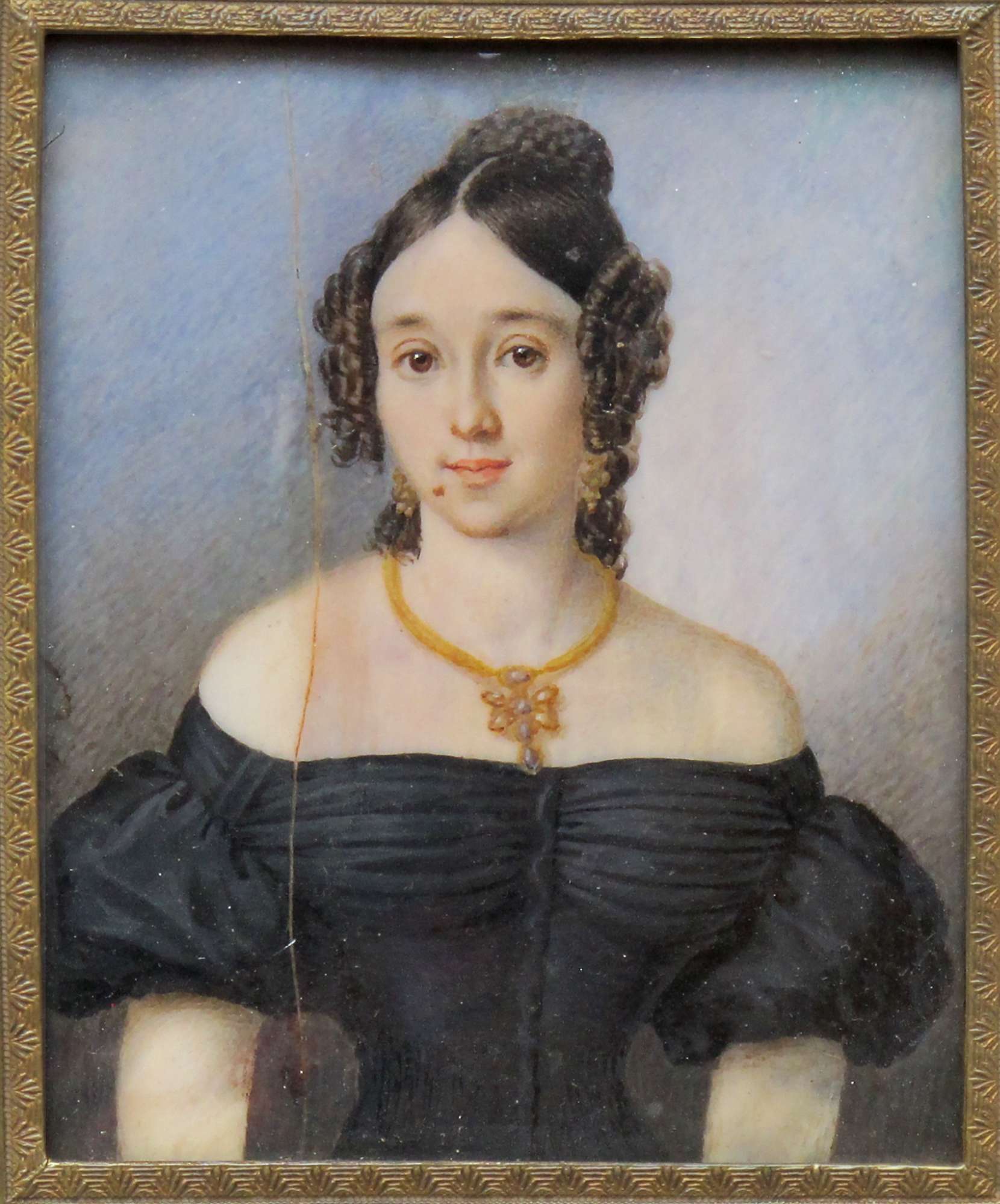 La miniatura, acquistata nel febbraio 1932 da Anna Maria Florio, ritrae una non meglio nota Maria Trevisan. Se l’abbigliamento e l’acconciatura hanno suggerito una datazione verso il 1840, la firma vergata lungo il margine sinistro, Castro, è stata attribuita al pittore e miniaturista Andrea De Castro (Pirano, 1806-Trieste 1884); proposta che si accoglie con prudenza: in quegli anni erano attivi, quali miniaturisti, anche Luigi De Castro (Trieste, 1803-post 1837) e di Tommaso De Castro (Pirano 1788 -Trieste 1854).