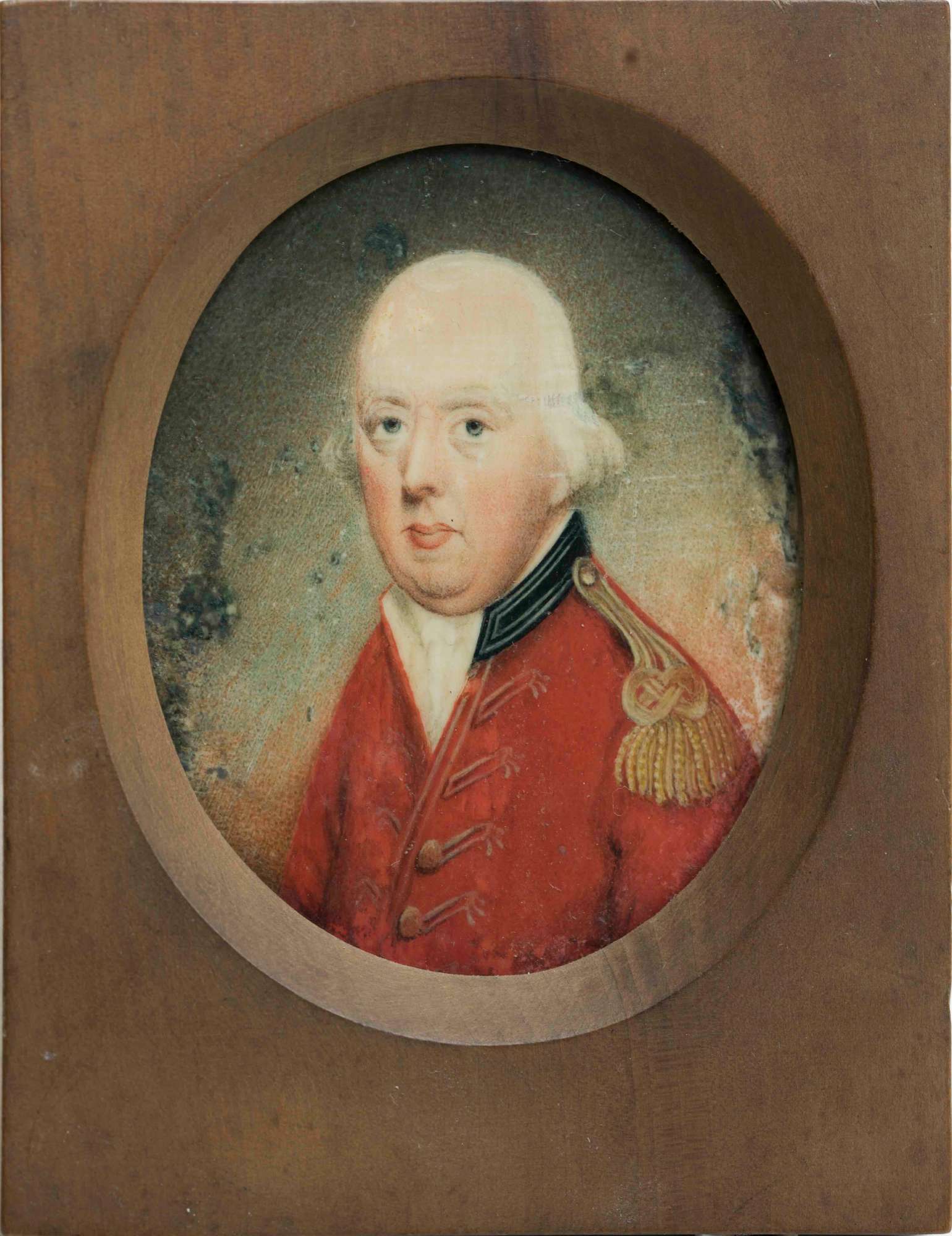 La miniatura, acquistata da Carlo Battistella nel 1878, raffigura un uomo in uniforme scarlatta con bavero blu e spallina munita di nappe. Si notano ridipinture in corrispondenza del margini.