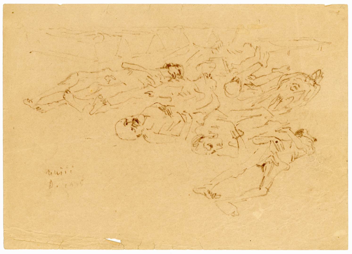 Sul recto è presente la firma, il luogo e la data: Mušič D. 1945 Sul verso vi è una nota manoscritta a matita “Todes – Durcheinander” (Morti alla rinfusa)