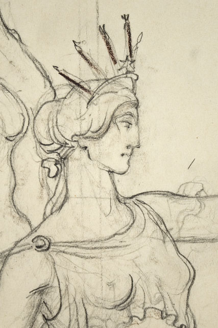 Studio preparatorio per la scultura della Vittoria alata, eretta di profilo sopra la sezione della cupola della lanterna. Scala 1: 20.